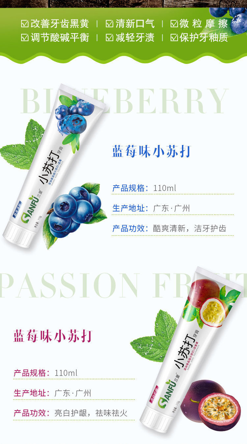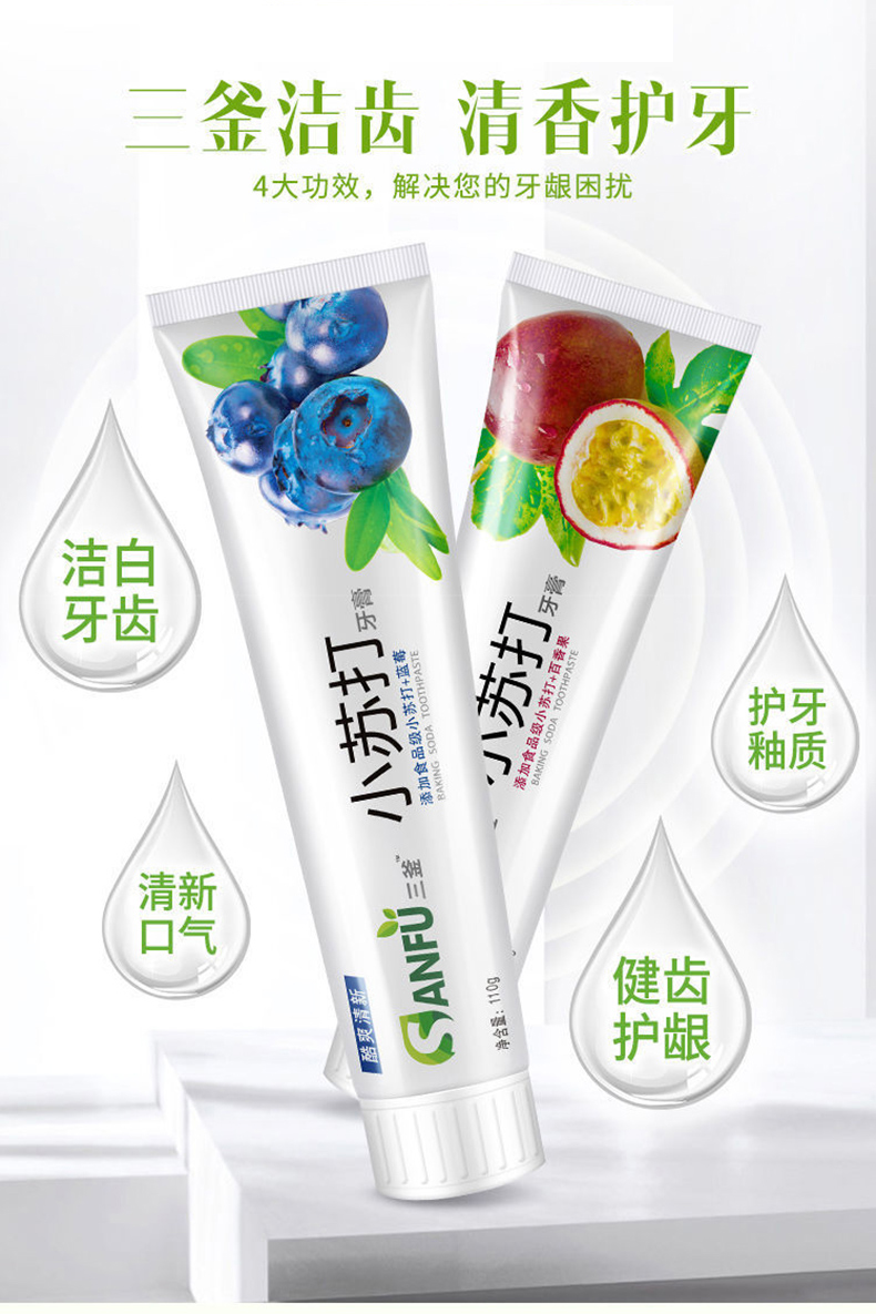 【爆款来袭】适当小苏打可以美白牙齿,祛除牙菌斑、牙结石!食品级小苏打+进口蓝莓+百香果酵素!双管齐下,选对牙膏,黄牙有救!【七天无理由退换】