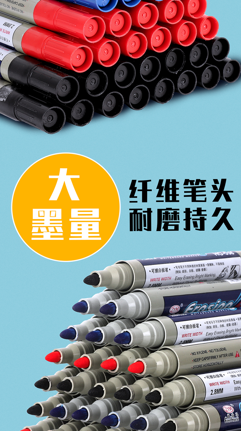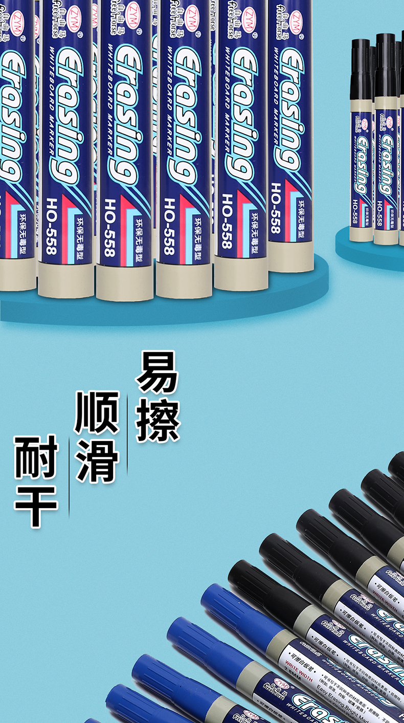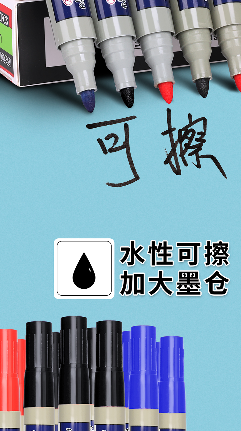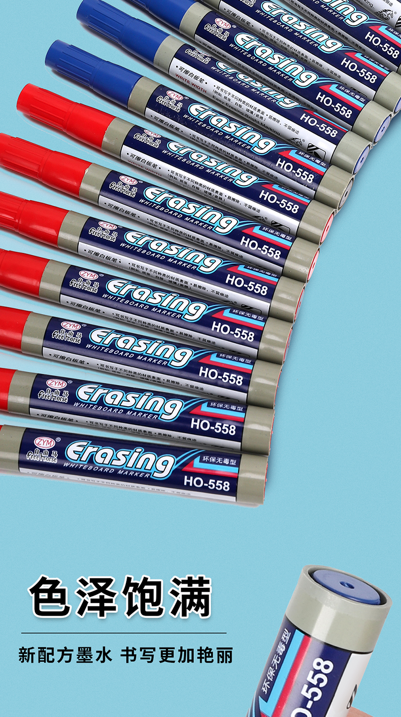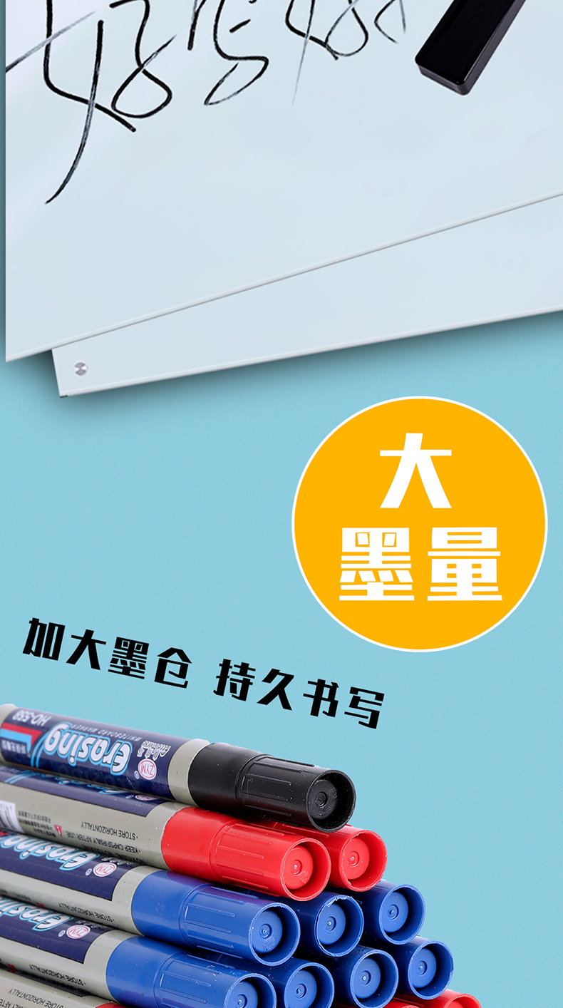 无痕白板笔,加大墨仓,擦鞋无痕,环保无毒,顺滑饱满,书写更加艳丽