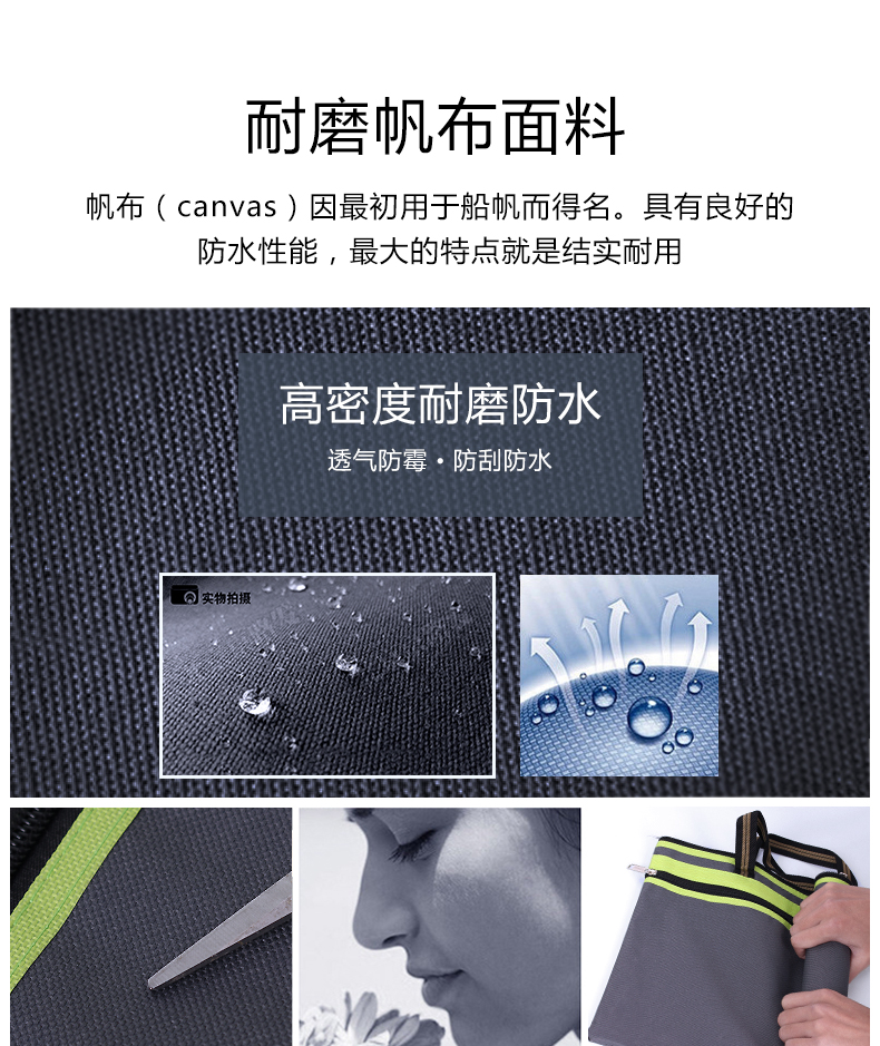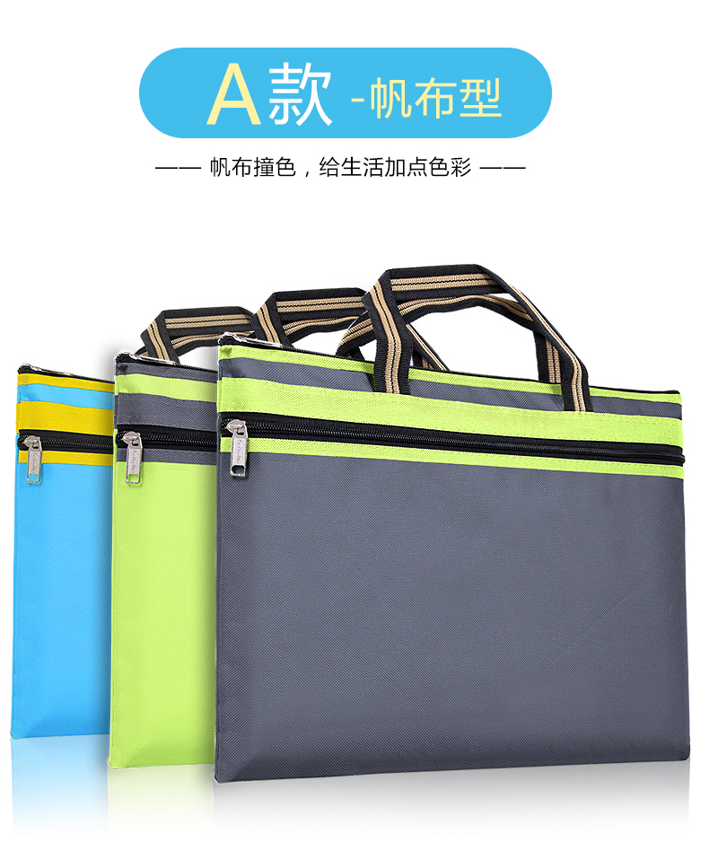 帆布文件袋a4商务办公资料袋拉链多层收纳袋防水会议公文袋加厚补习包女士手提包男士公文包办公学生用小清新