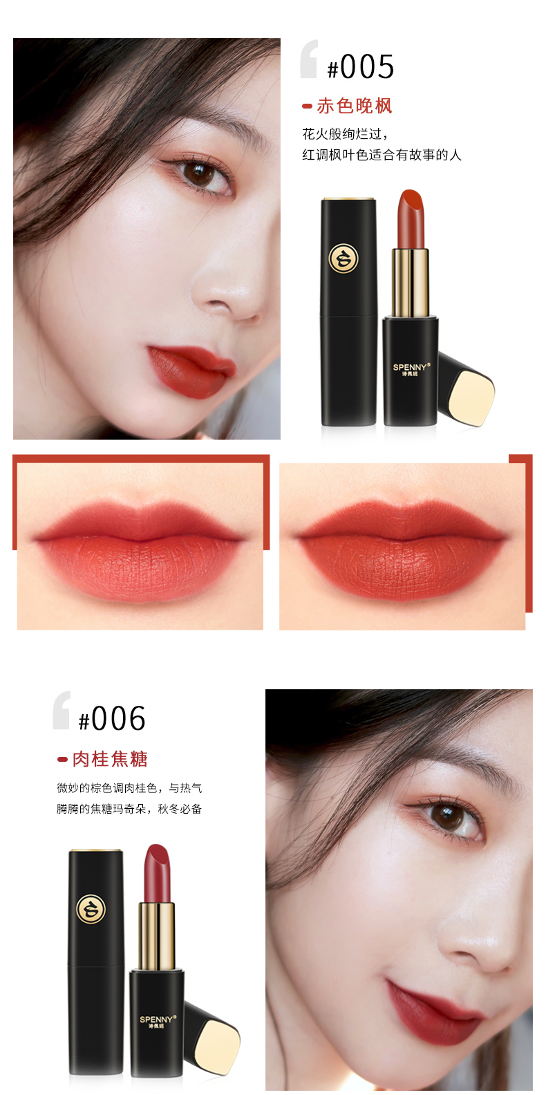 Spenny/诗佩妮金钻奢耀雾面丝绒哑光口红女 不易脱色学生款唇膏