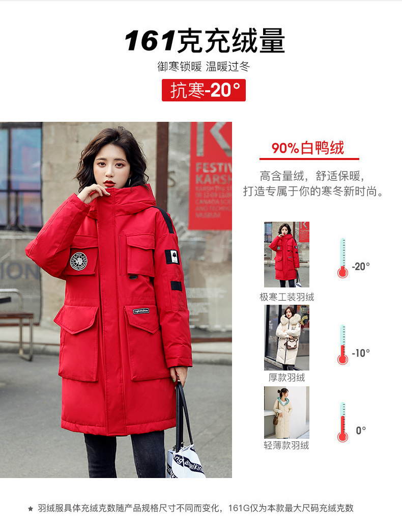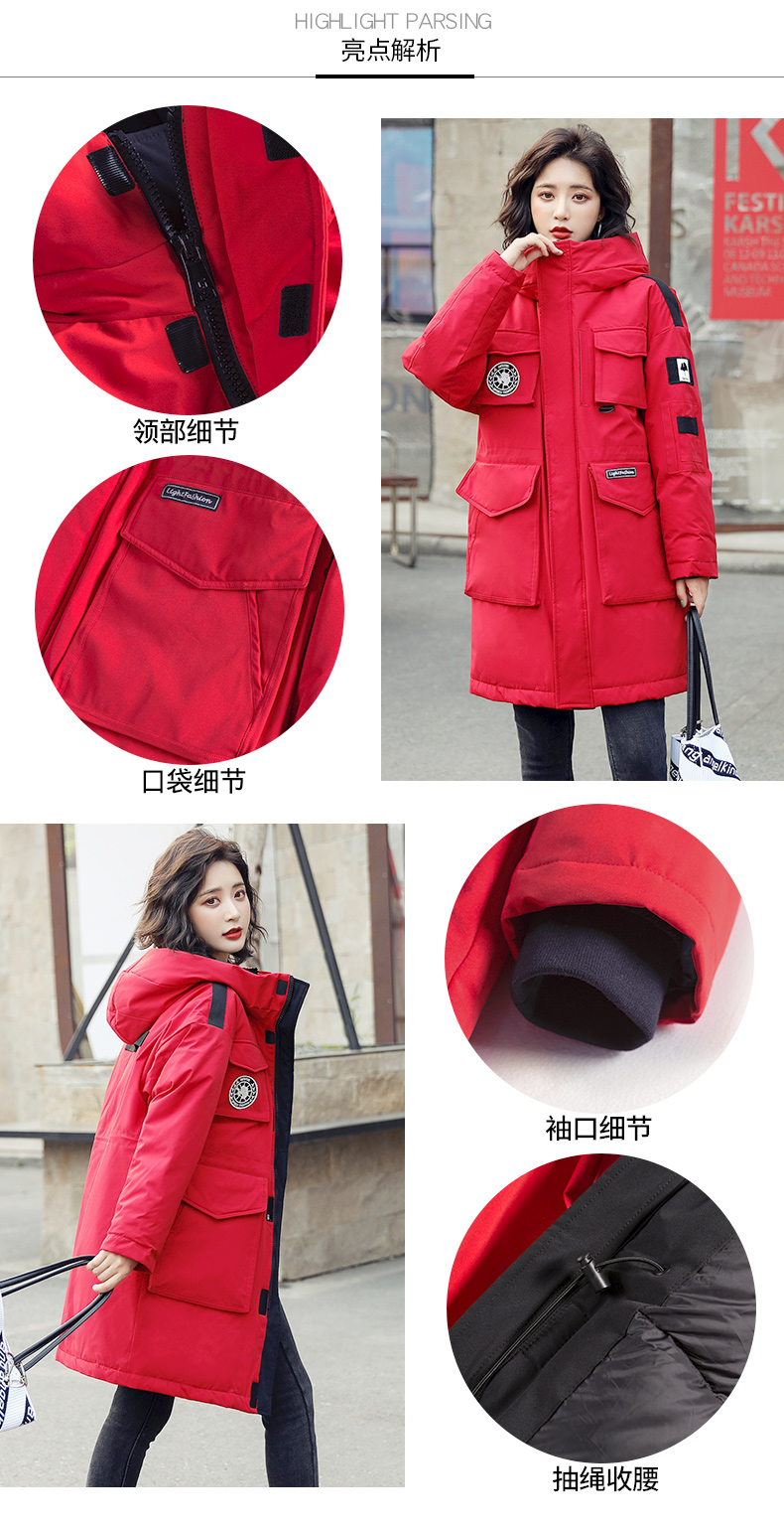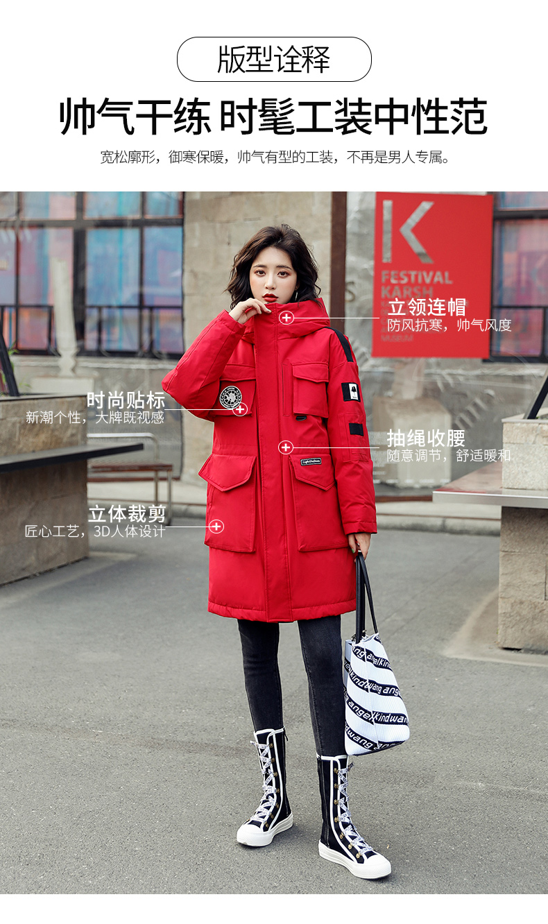 雅鹿羽绒服女2019新款中长款爆款韩版工装加厚大鹅外套冬装潮Y