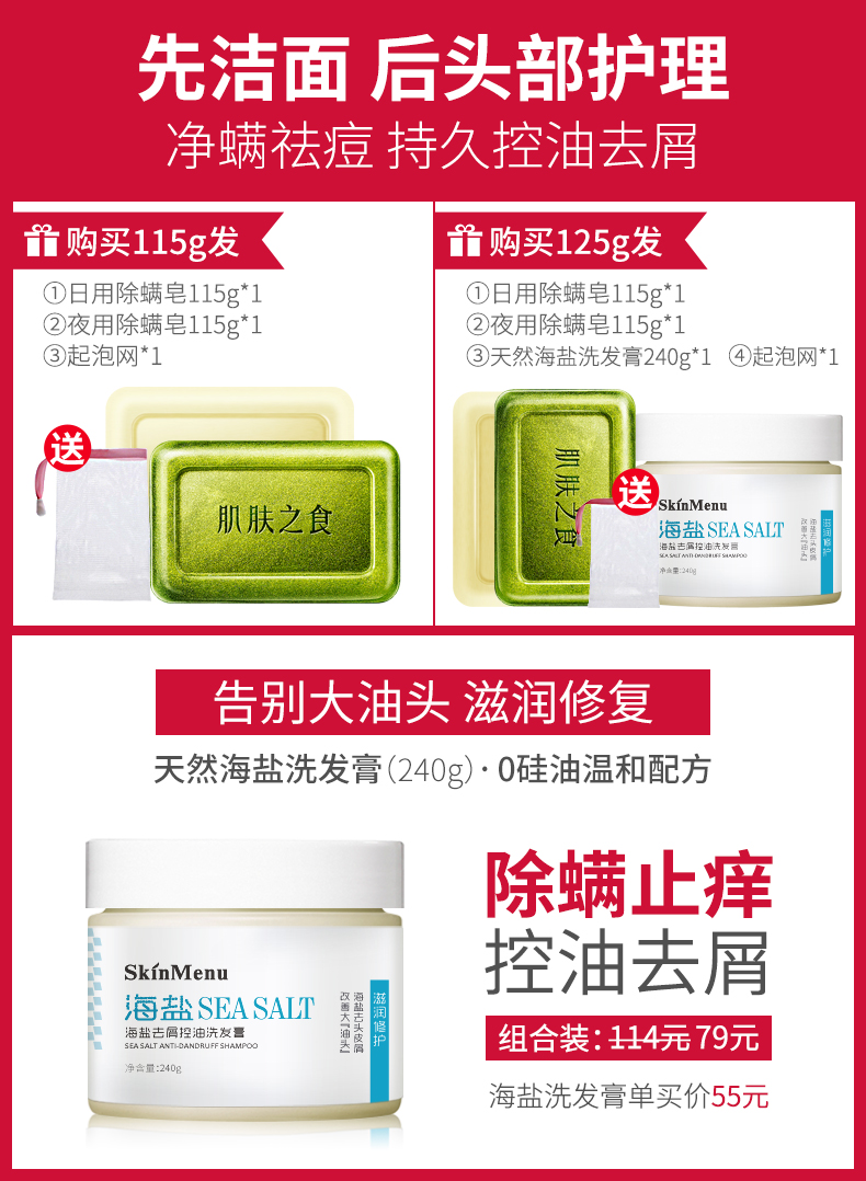 肌肤之食除螨皂,硫磺海盐皂,面部祛痘洗脸皂,男女马油香皂日夜去螨虫,除螨抑菌,祛痘控油,买1送1送夜用除螨皂。
