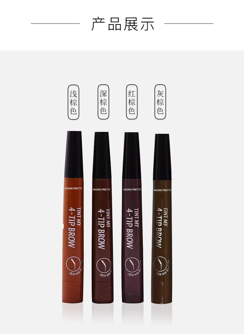 【第二件半价】叉水眉笔,独特四叉笔尖设计,笔盖插拔设计,品牌LOGO,防水不掉色配方,五大色系,画眉必购。