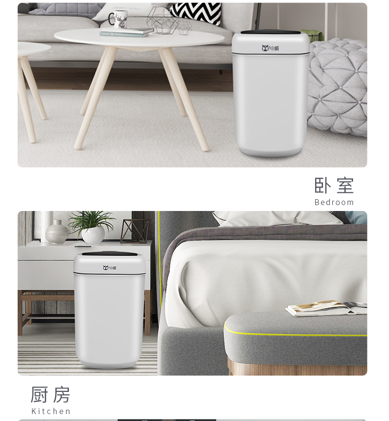 智能感应垃圾桶分类可爱少女卧室厕所卫生间厨房家用客厅小米白