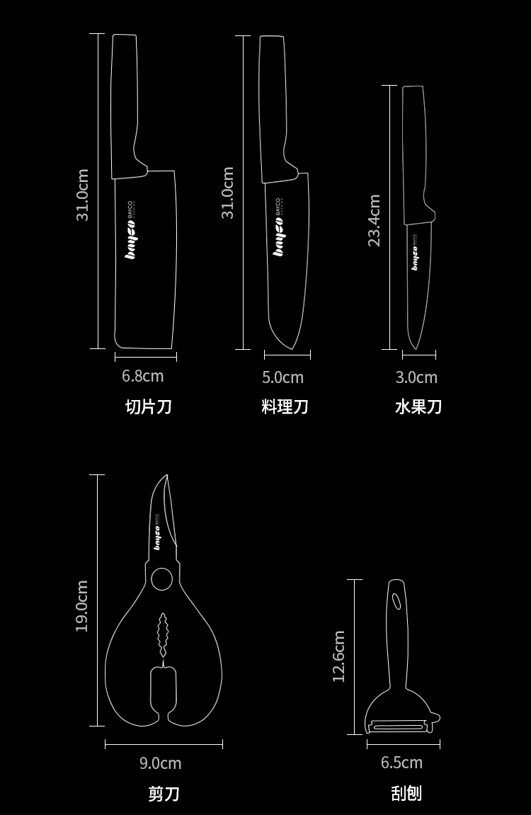 拜格刀具套装厨房家用全套厨具不锈钢宝宝婴儿辅食工具水果刀菜刀