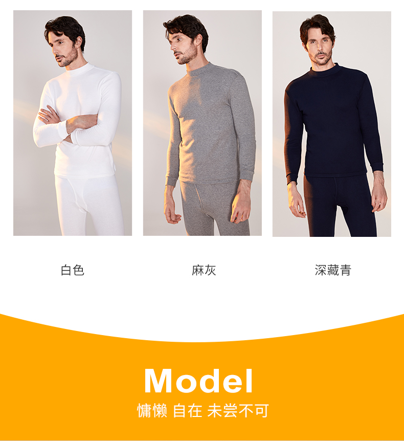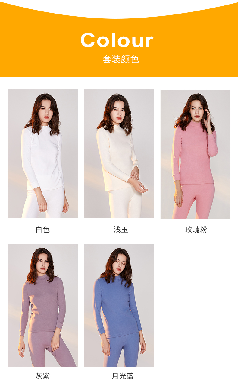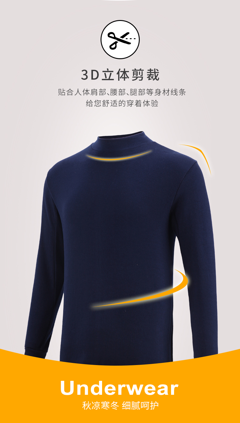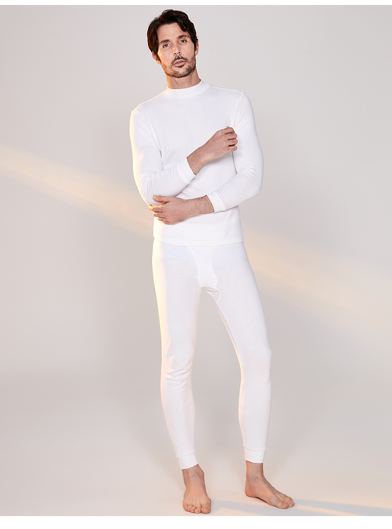 宜而爽男士纯棉半高领保暖内衣秋冬情侣款秋衣秋裤女全棉毛衫套装