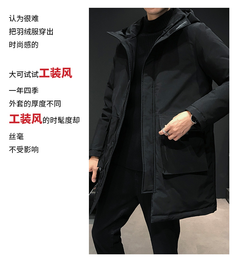 男士羽绒服2019冬季新款日系青年中长款白鸭绒休闲连帽爆款外套潮