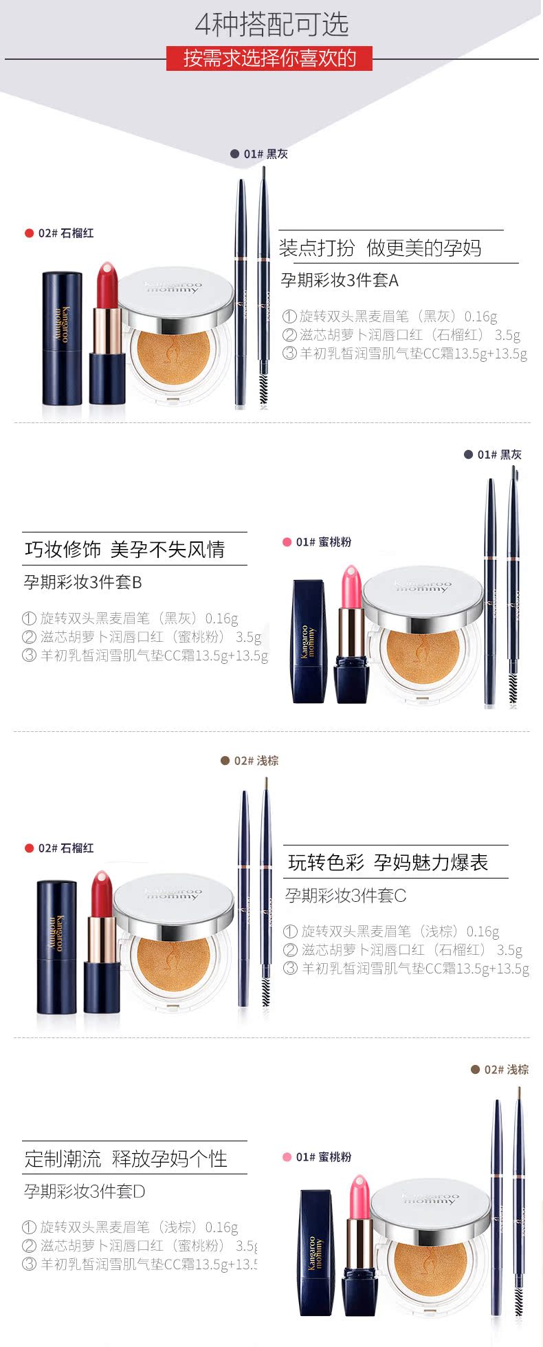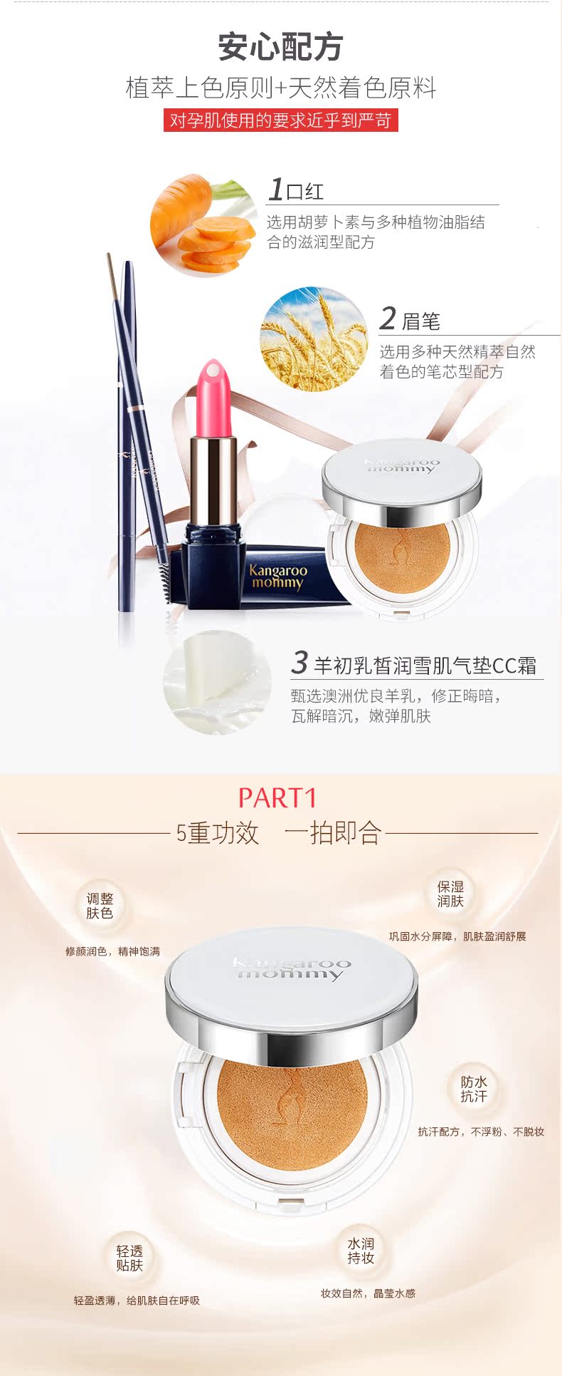 【袋鼠妈妈】袋鼠妈妈怀孕期化妆品旗舰店,孕妇彩妆,气垫CC霜,口红,眉笔,送卸妆水+气垫替换装,百变魅色,莹润倾心,官方直售,正品保障,孕期也要美美哒的。【赠运费险】