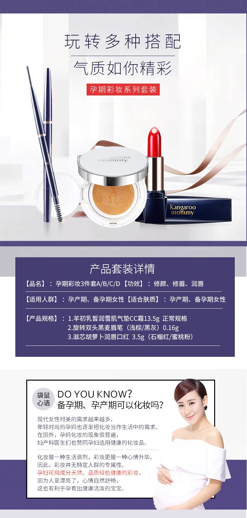 袋鼠妈妈 孕妇彩妆气垫CC霜套装口红眉笔天然怀孕期化妆品旗舰店