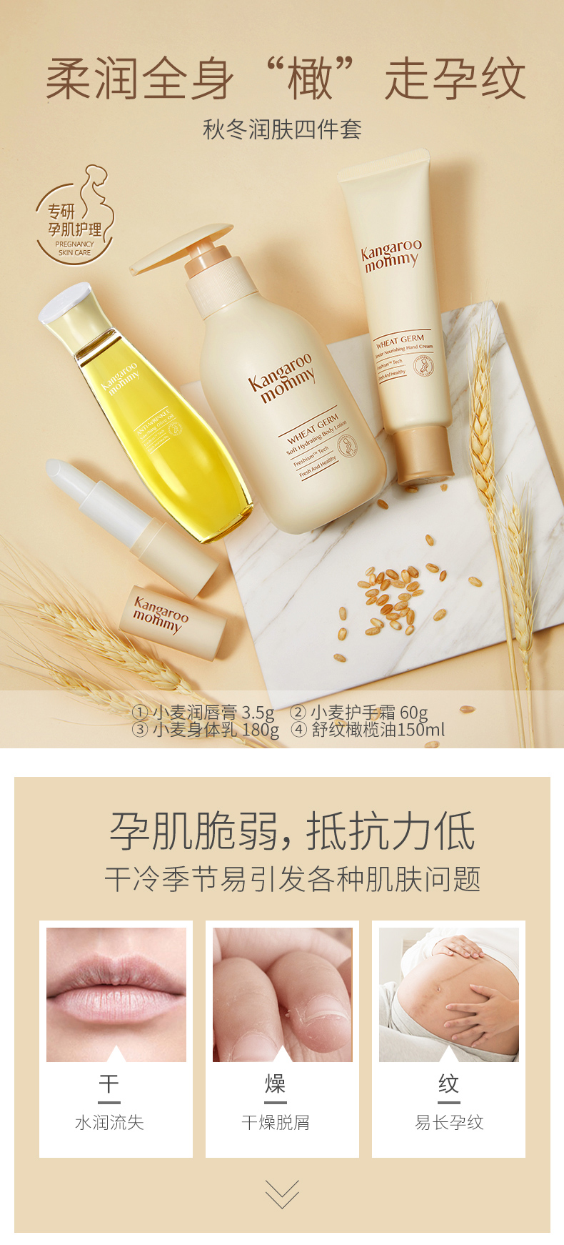 袋鼠妈妈 孕妇唇膏天然护手霜身体乳补水保湿孕妇秋冬护肤品套装