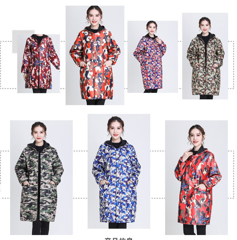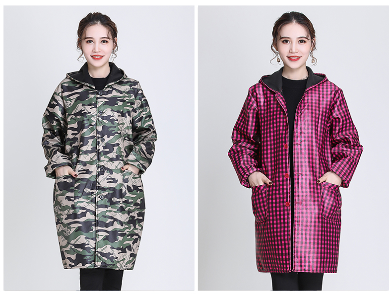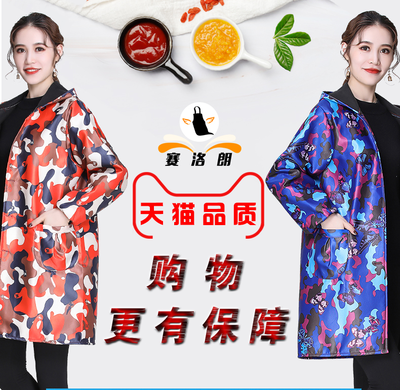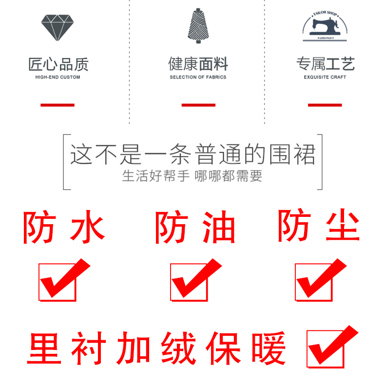 围裙加绒女时尚家用厨房防水油皮外套长袖冬季工作服韩版罩衣大人