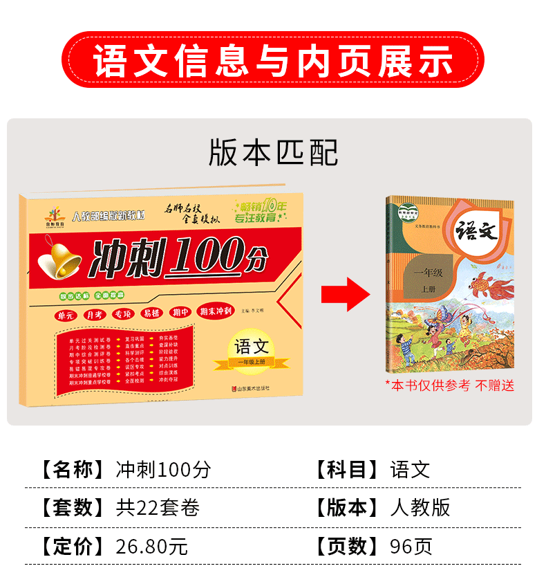 一年级上册,期末冲刺100分试卷,印刷清晰,提纲要领,精选重点试题,条理清晰,帮助孩子快速提升学习水平!考场真题模拟!趁促销多囤几套,反复练习才能烂熟于心!