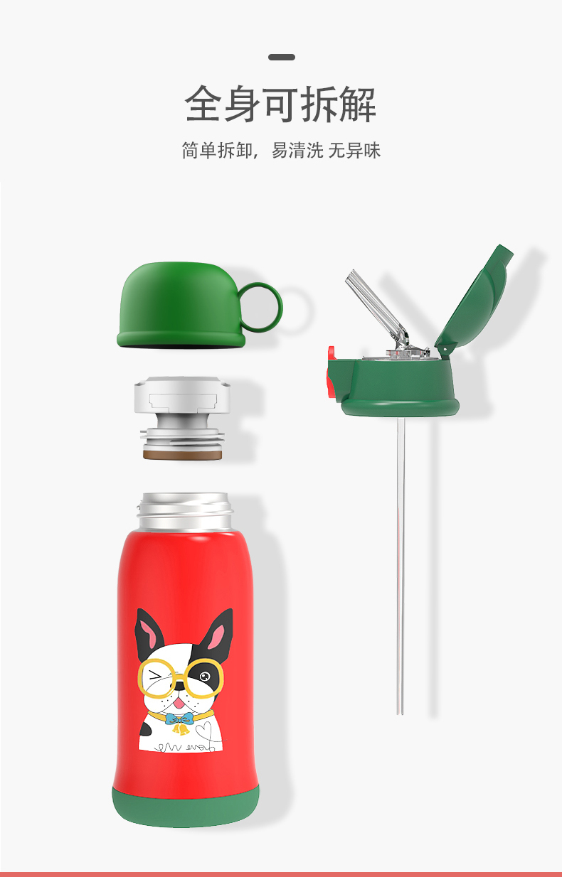 儿童保温杯 带吸管316防摔水杯两用宝宝男女小学生便携不锈钢水壶