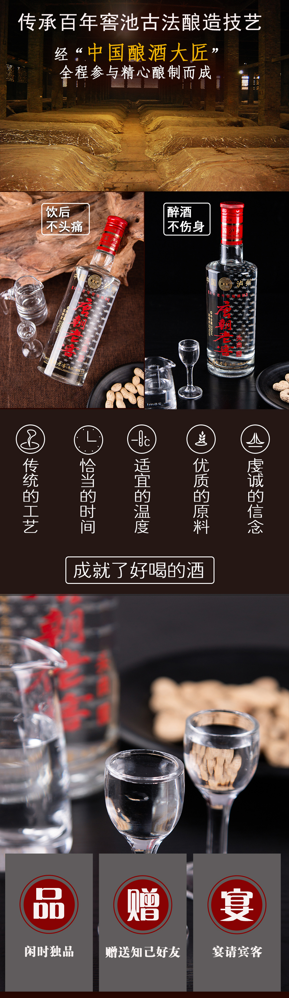 浓香型52度白酒礼盒泸州唐朝老窖白酒整箱粮食酒水头曲500ml*6瓶