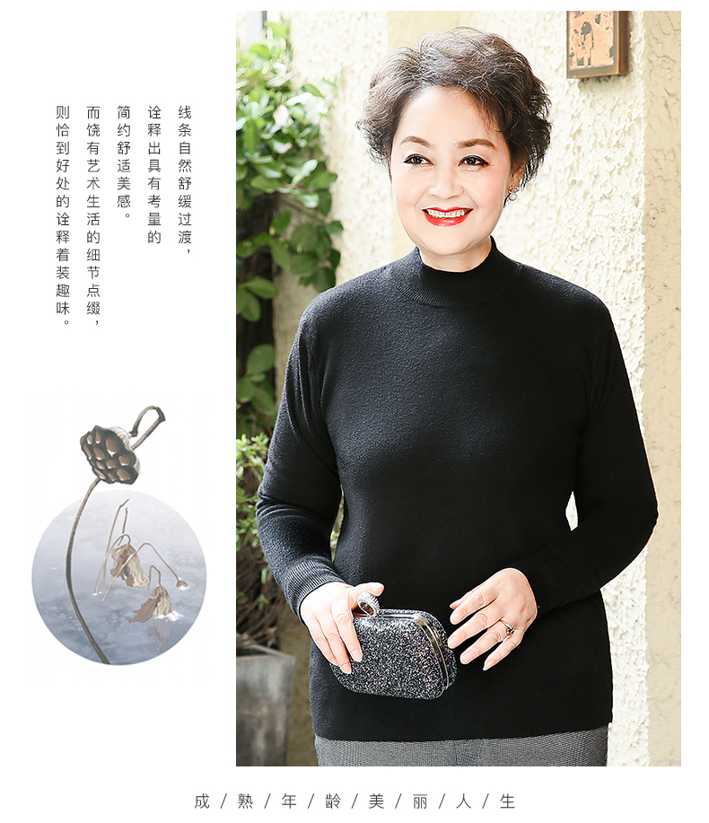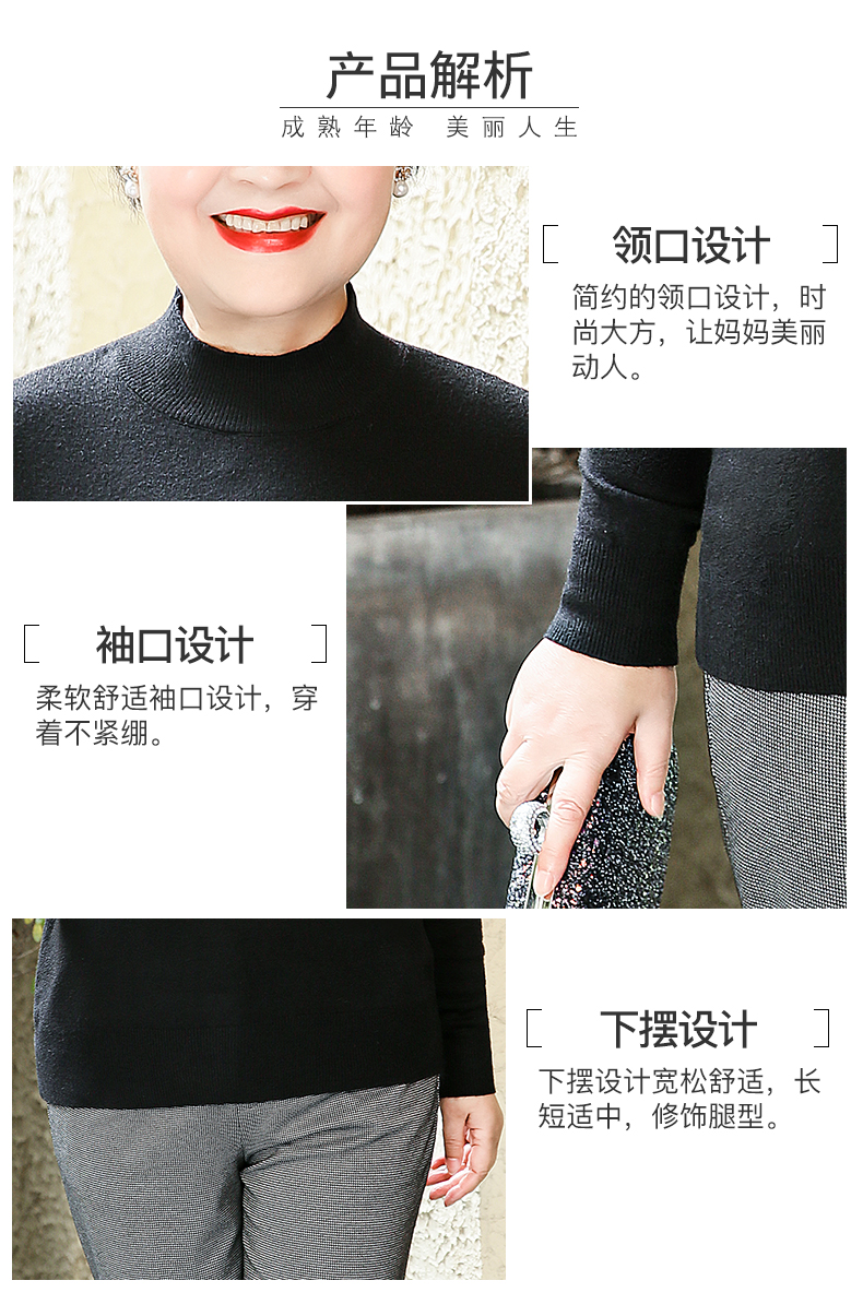 妈妈2019新款秋装打底衫秋冬款针织衫加厚毛衣上衣服中老年人女装
