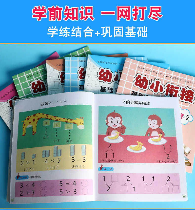 幼小衔接一日一练教材整合幼儿园2本,知识衔接,重点难点,幼儿园升小学必备练习本,名校入学练习学前整合,分类测试,紧扣题材,巩固学习,孩子学习好帮手,平均一本2块多钱,宝妈速屯
