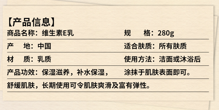 【网红力荐款】惊爆价!国货维生素E乳,一年四季全身都可使用,质地清爽不油腻,温和滋养肌肤,为缺水肌肤补充水份,呈现水润嫩滑美肌【赠运费险】
