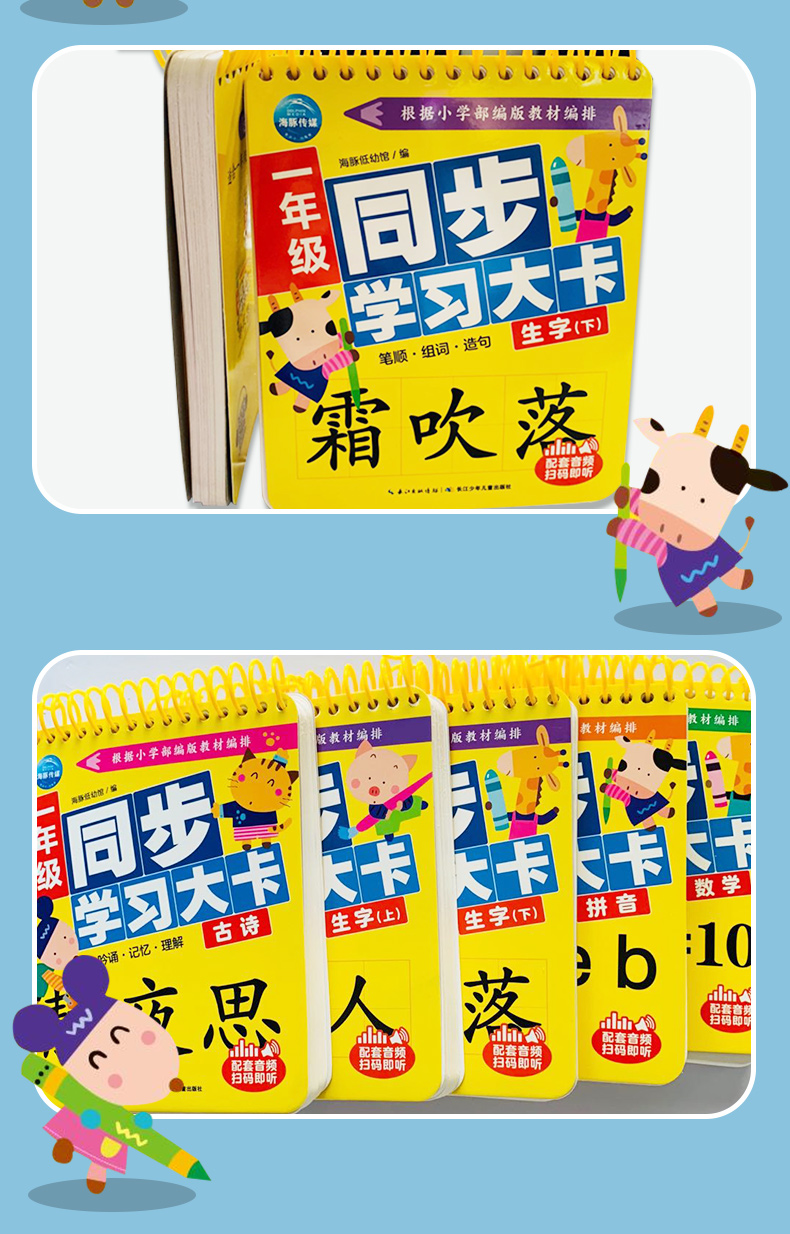 【新华书店直营】古诗,拼音,生字,数学…一套与教材同步的学习大卡,配套音频,扫码还能听!家有小学生的爹妈,快撸回家!