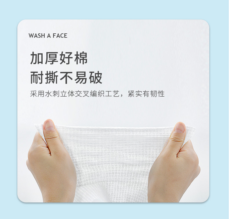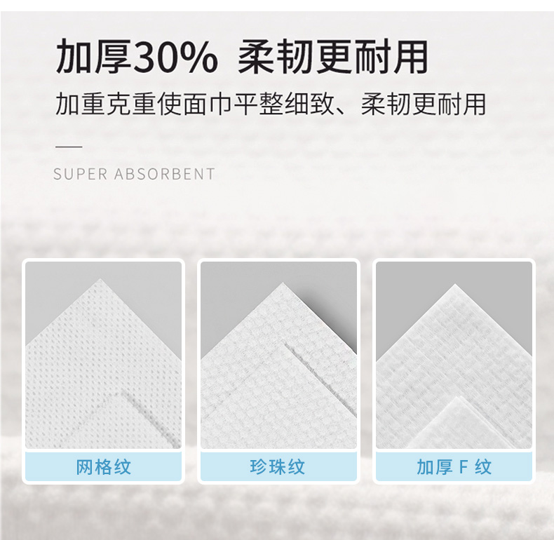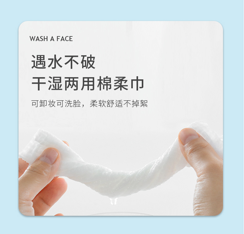 选取天然生态棉花,柔软棉花丝,亲肤不致敏,不会对柔嫩肌肤产生刺激,为了更舒适的使用体验,我们采用了更加厚实的珍珠纹工艺,质感更舒适,耐用不易变形,可循环二次使用。
