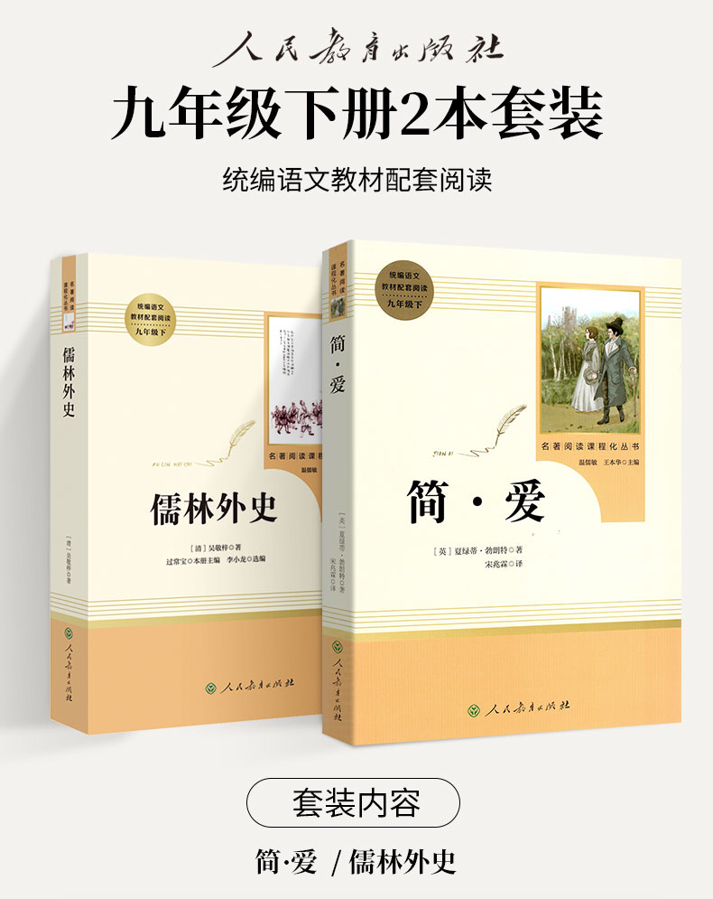 儒林外史+简爱正版原著书籍2本、九年级下册必读名著、人民教育出版社教育部推荐书籍,内容图文相结合、易于理解。