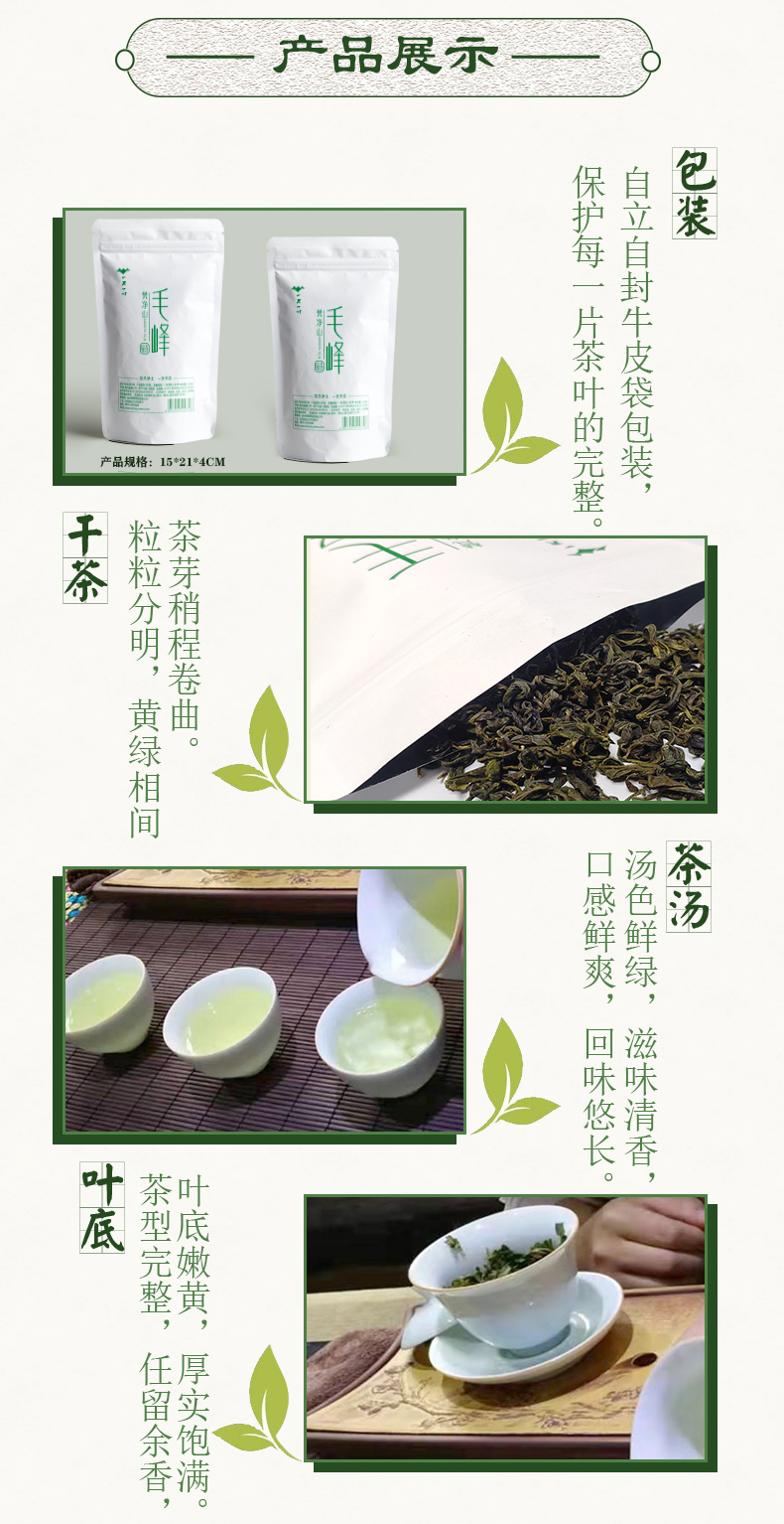 精选早春头选,雨前嫩茶,清香怡人,滋味鲜浓,口感醇香,浓香四溢,回甘久远,好茶就是这么出色,明前嫩芽,趁鲜采摘,鲜爽味香,色泽鲜润,精美包装。