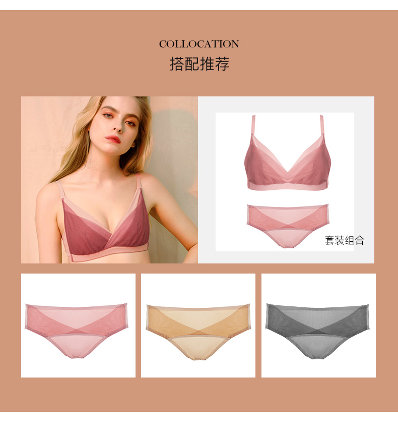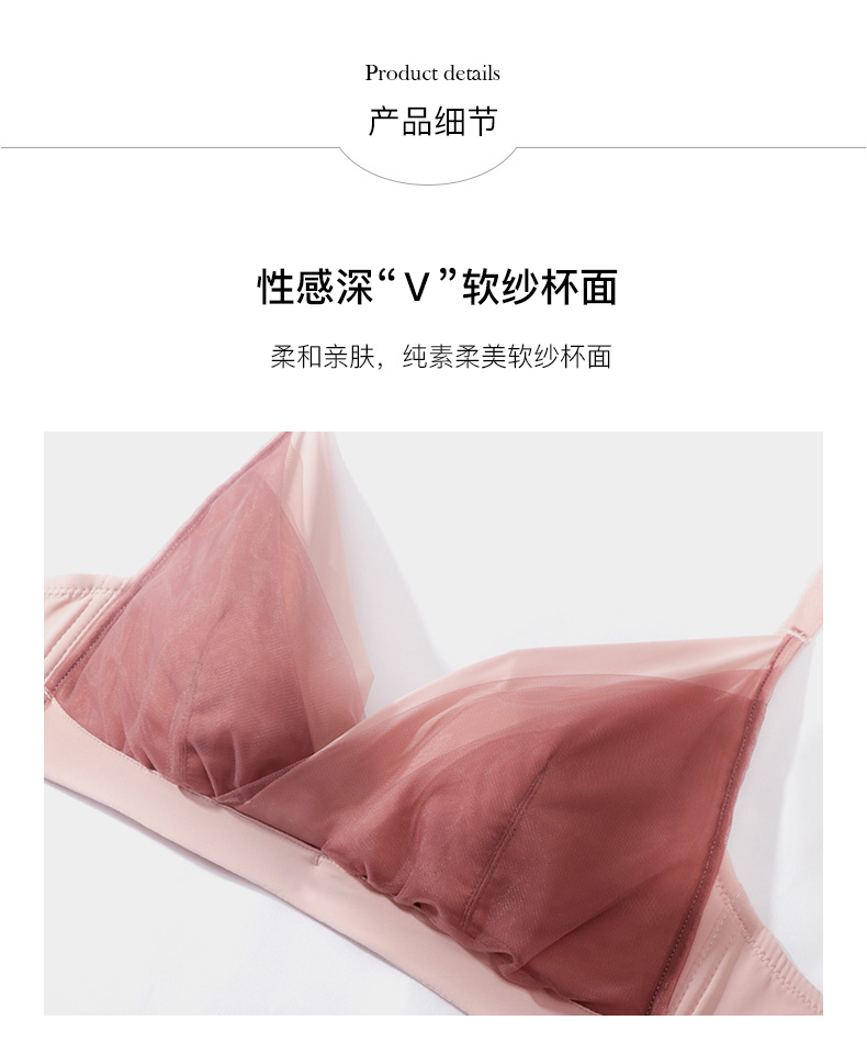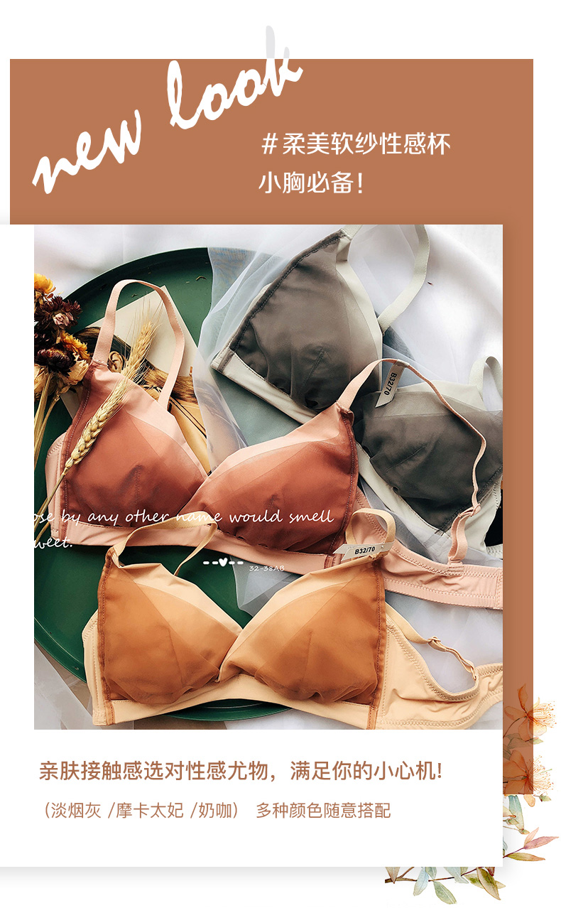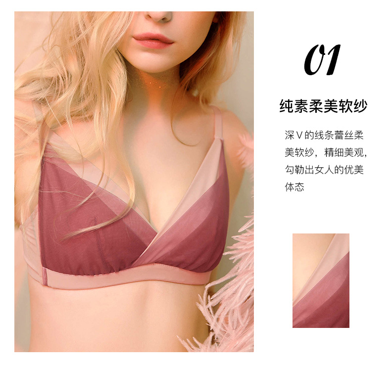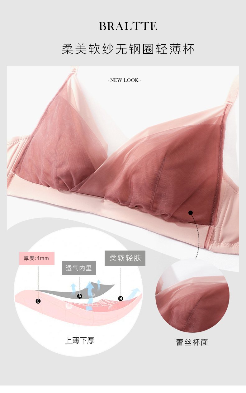 鸾瑶法式三角杯薄款内衣少女无钢圈性感聚拢网纱蕾丝小文胸罩套装