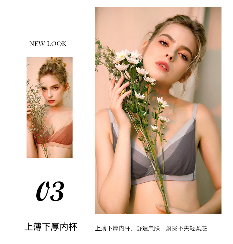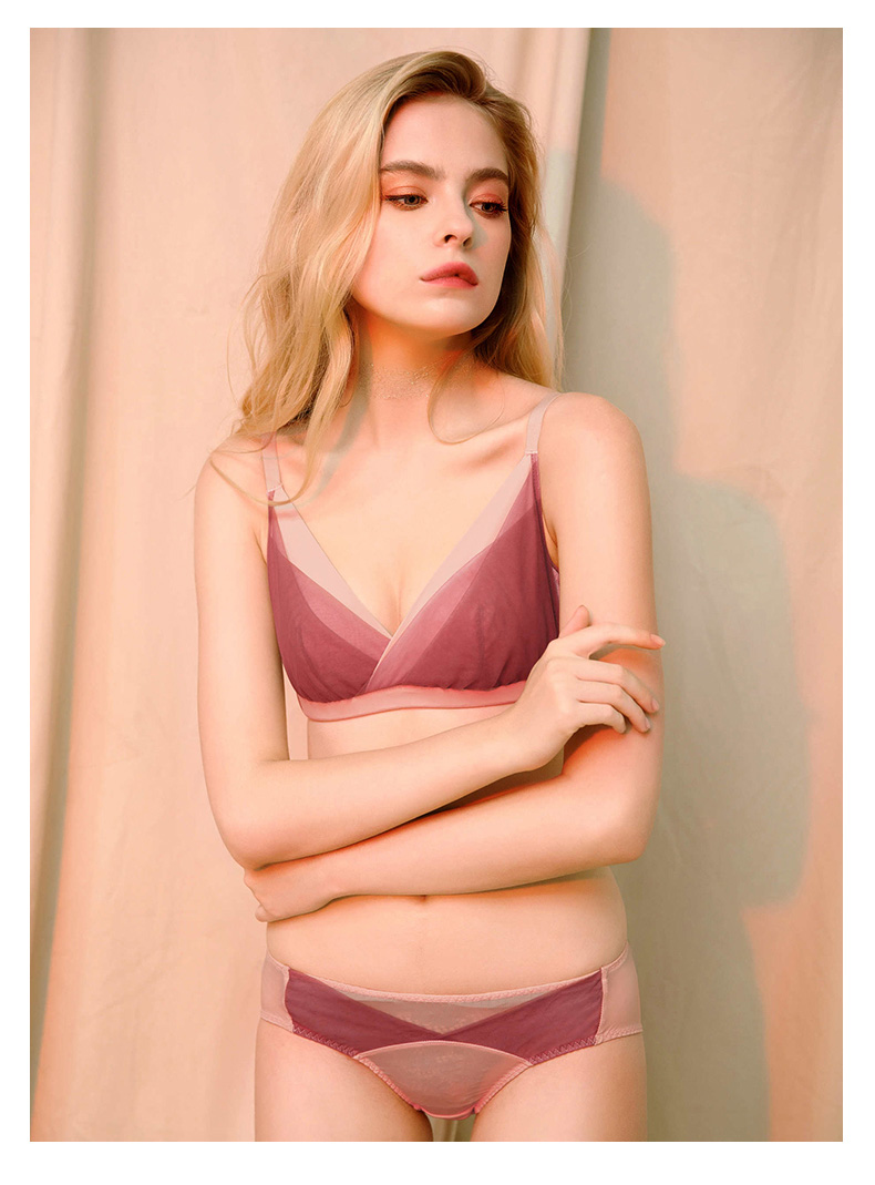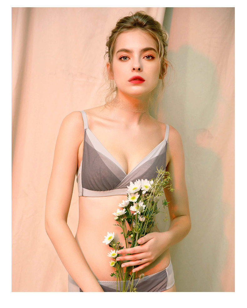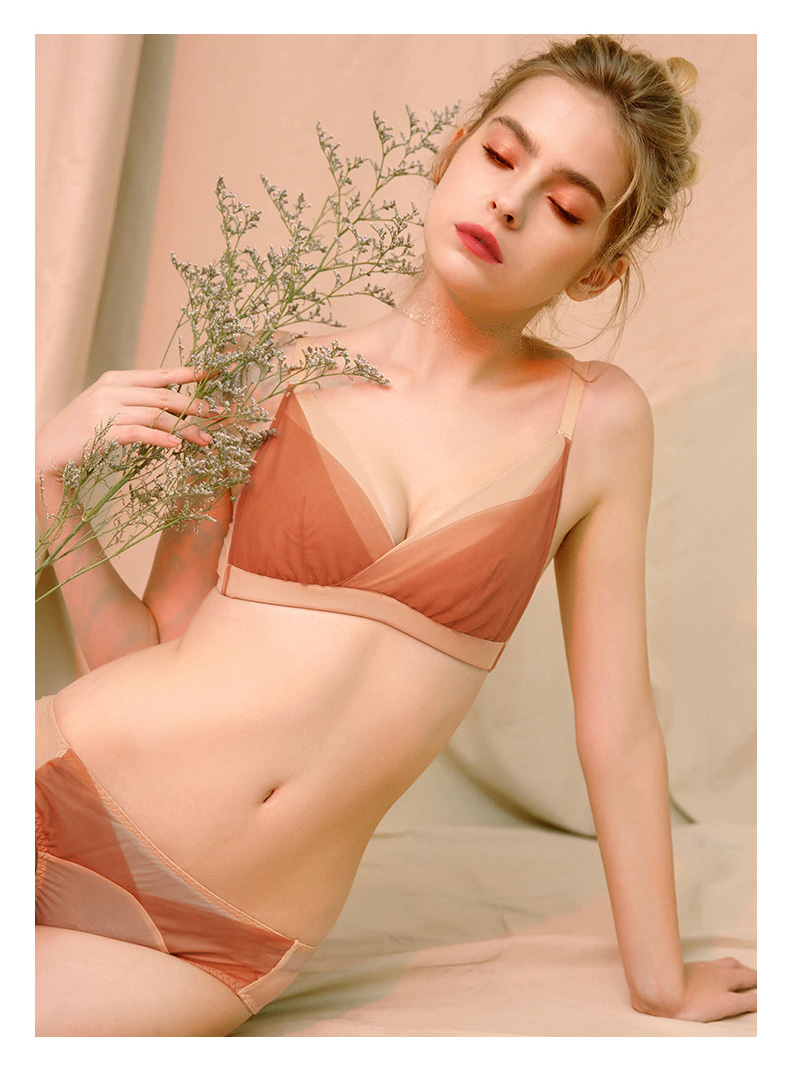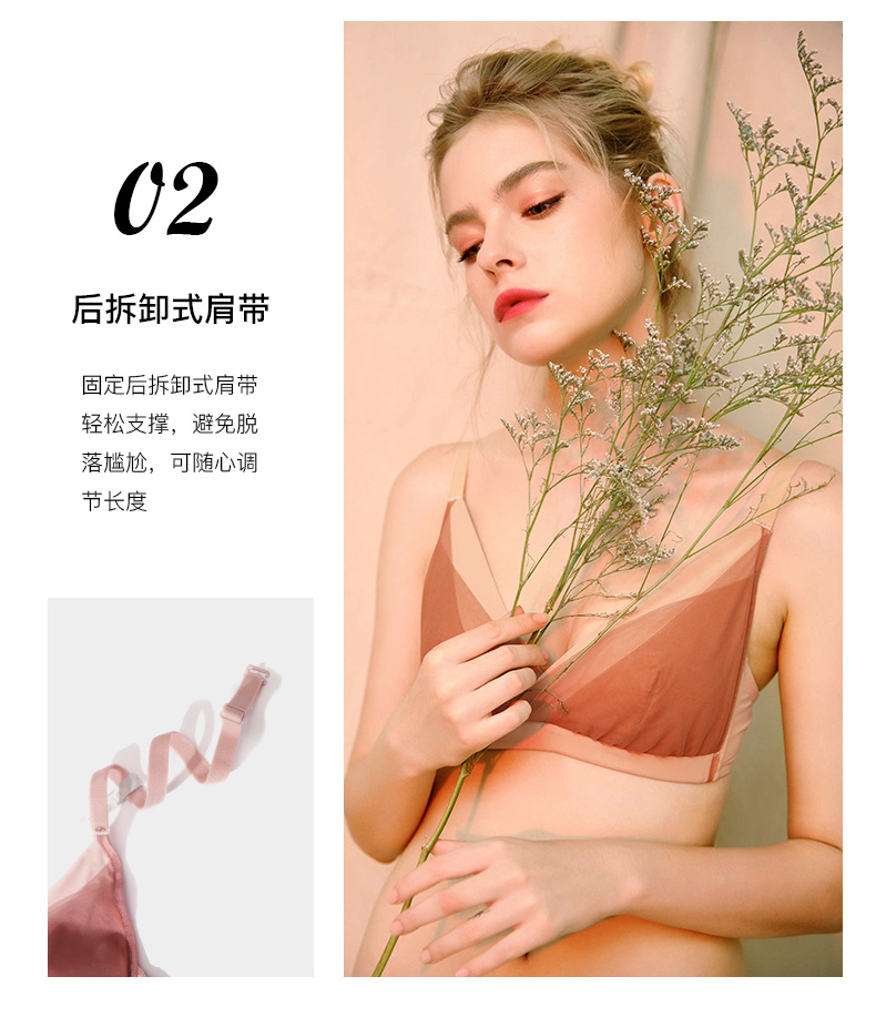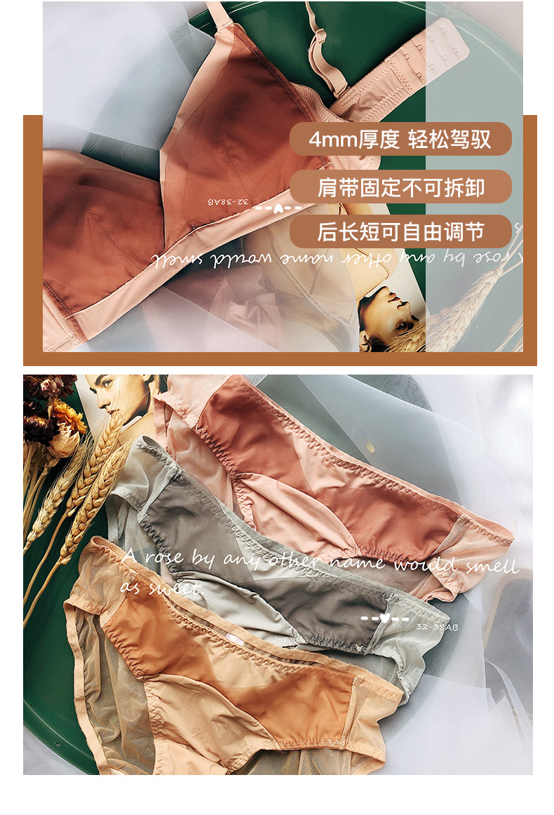 鸾瑶法式三角杯薄款内衣少女无钢圈性感聚拢网纱蕾丝小文胸罩套装