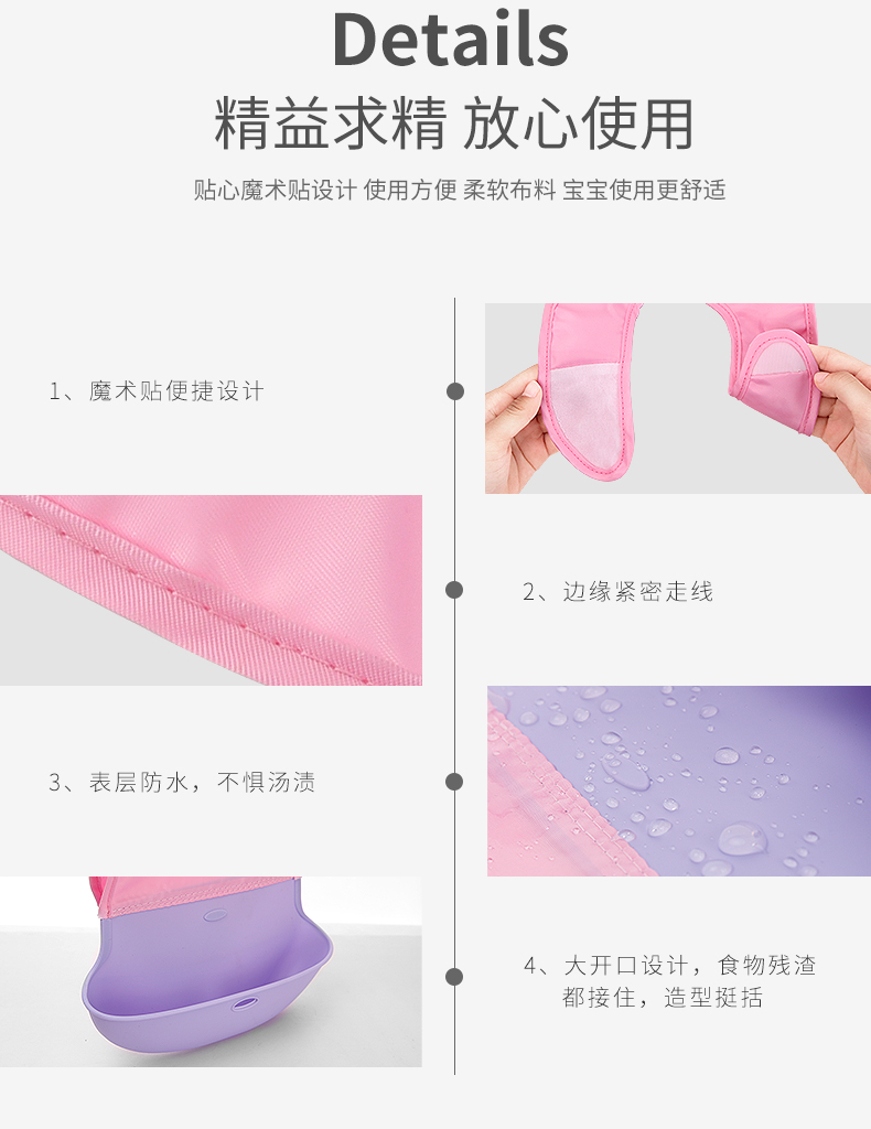 食品级硅胶材质,加固立体凹槽,兜住食物不散落,不易变形,不用担心宝宝弄脏衣服,宝宝可以放心咬,安全卫生,让宝宝每天都萌萌哒【赠运费险】