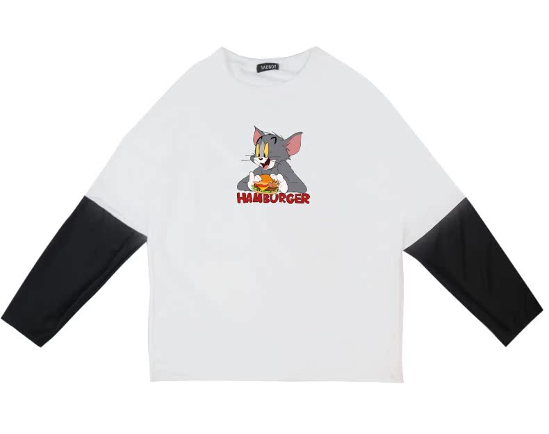 【PrinceBlog设计】原创潮牌假两件印花T恤,猫和老鼠系列汉堡汤姆可爱印花,不起球,不退色,时尚新宠,舒适透气,耐磨耐穿~穿出你的潮流范!不要犹豫!听我的~买它!【赠运费险】