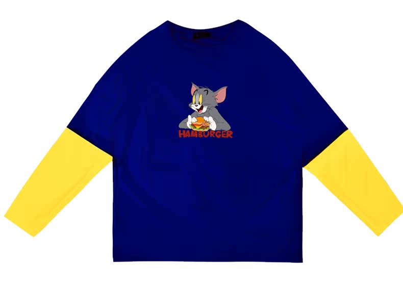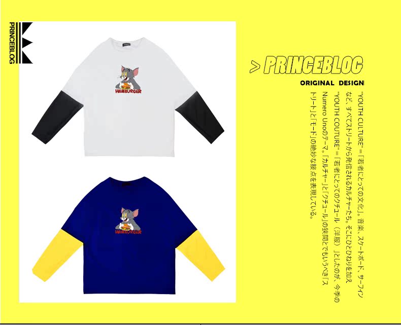 PrinceBlog童话镇2019猫和老鼠系列汉堡汤姆TOM拼接假两件情侣T恤