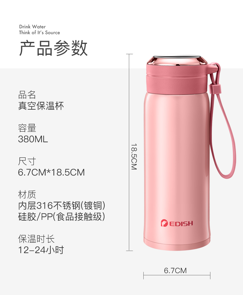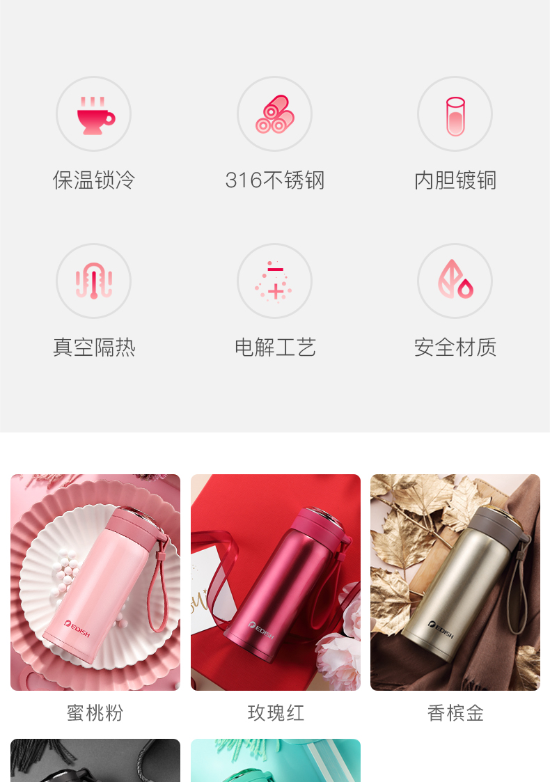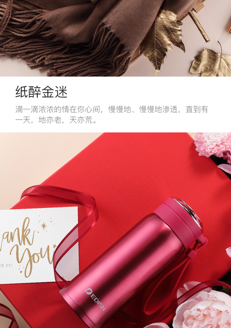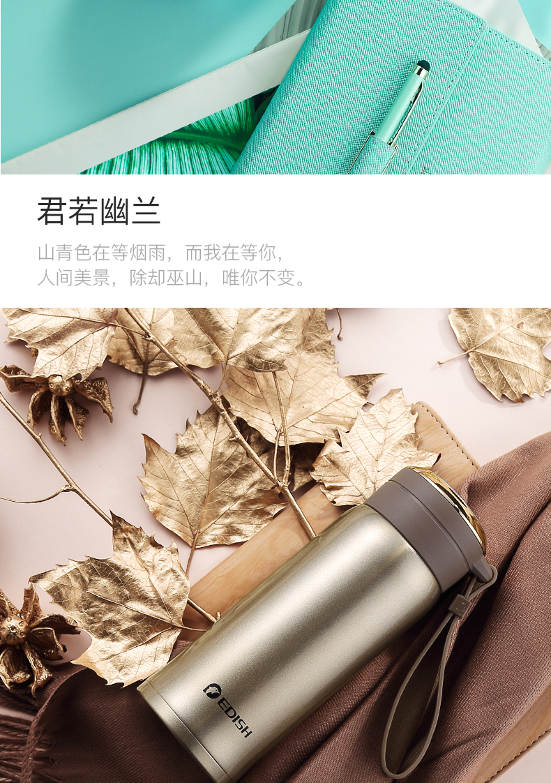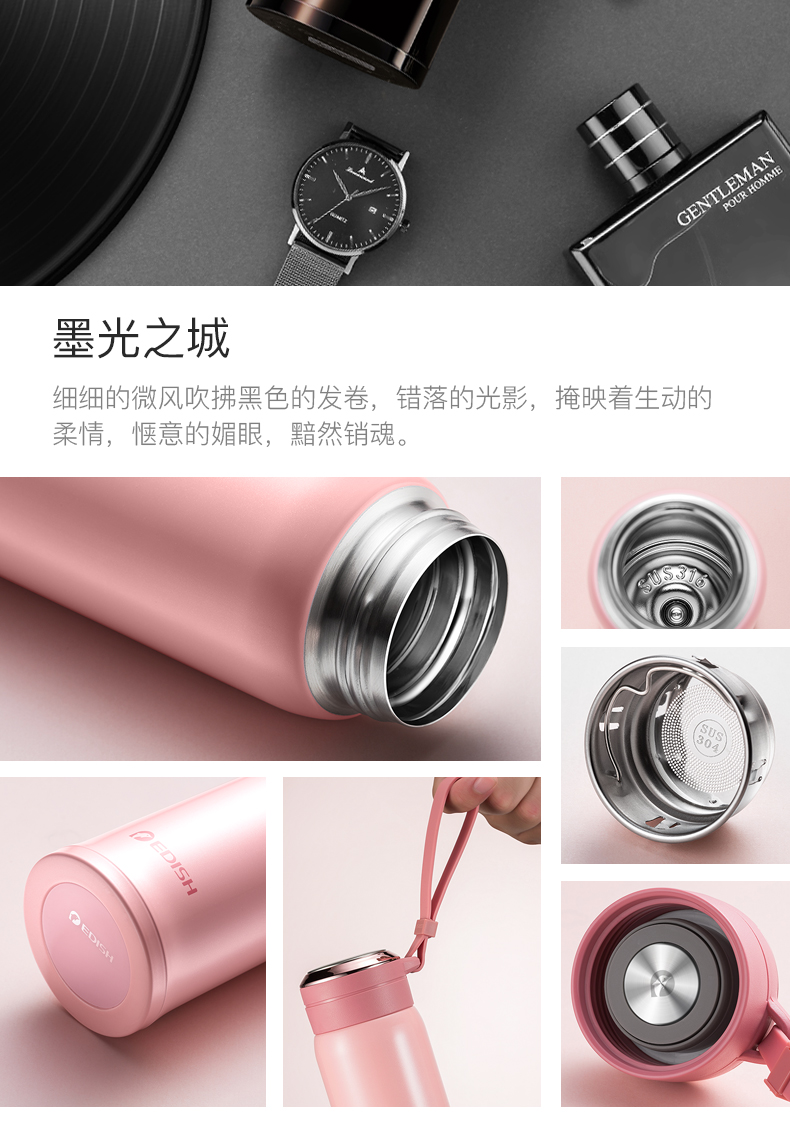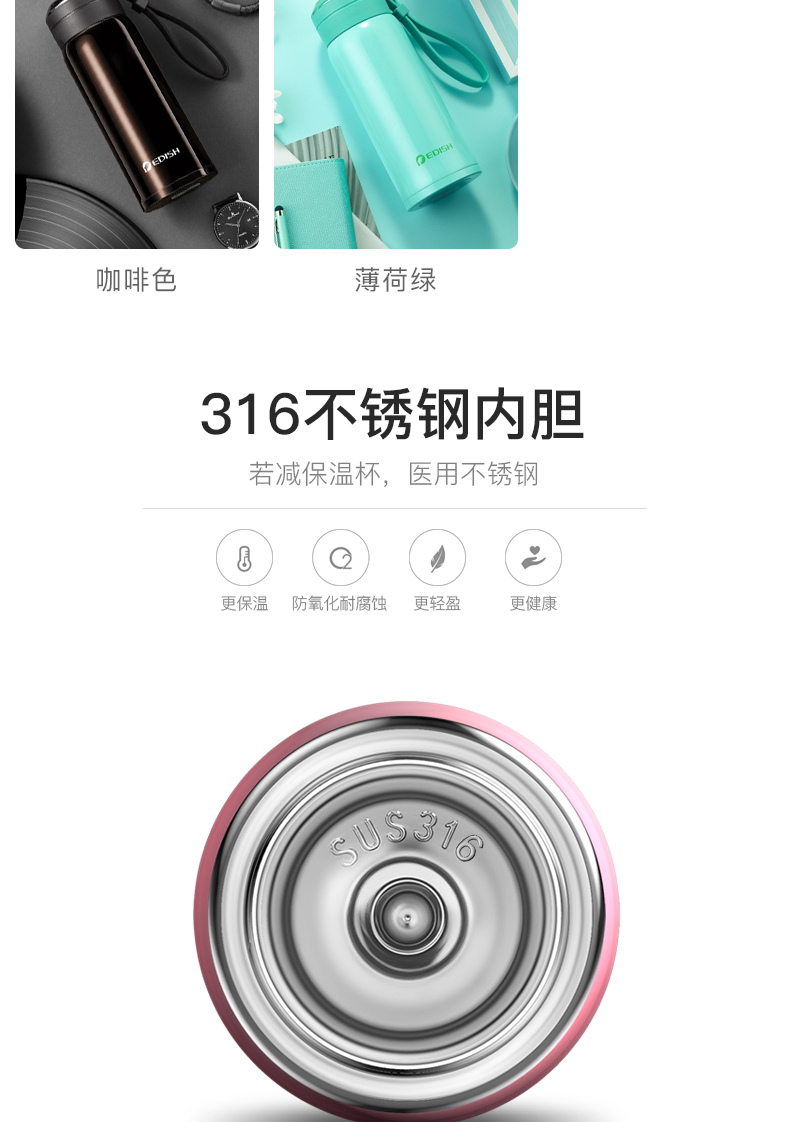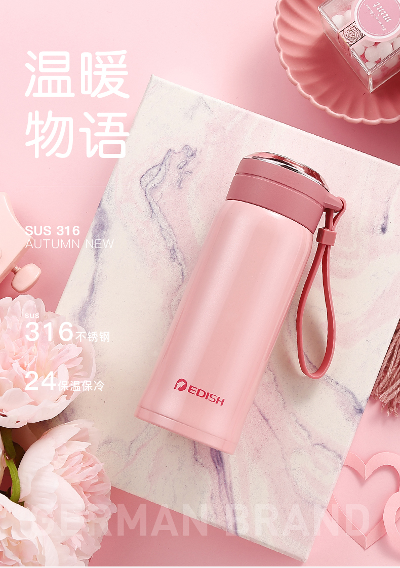 德国EDISH保温杯时尚男女真空316不锈钢水杯子学生儿童便携茶杯