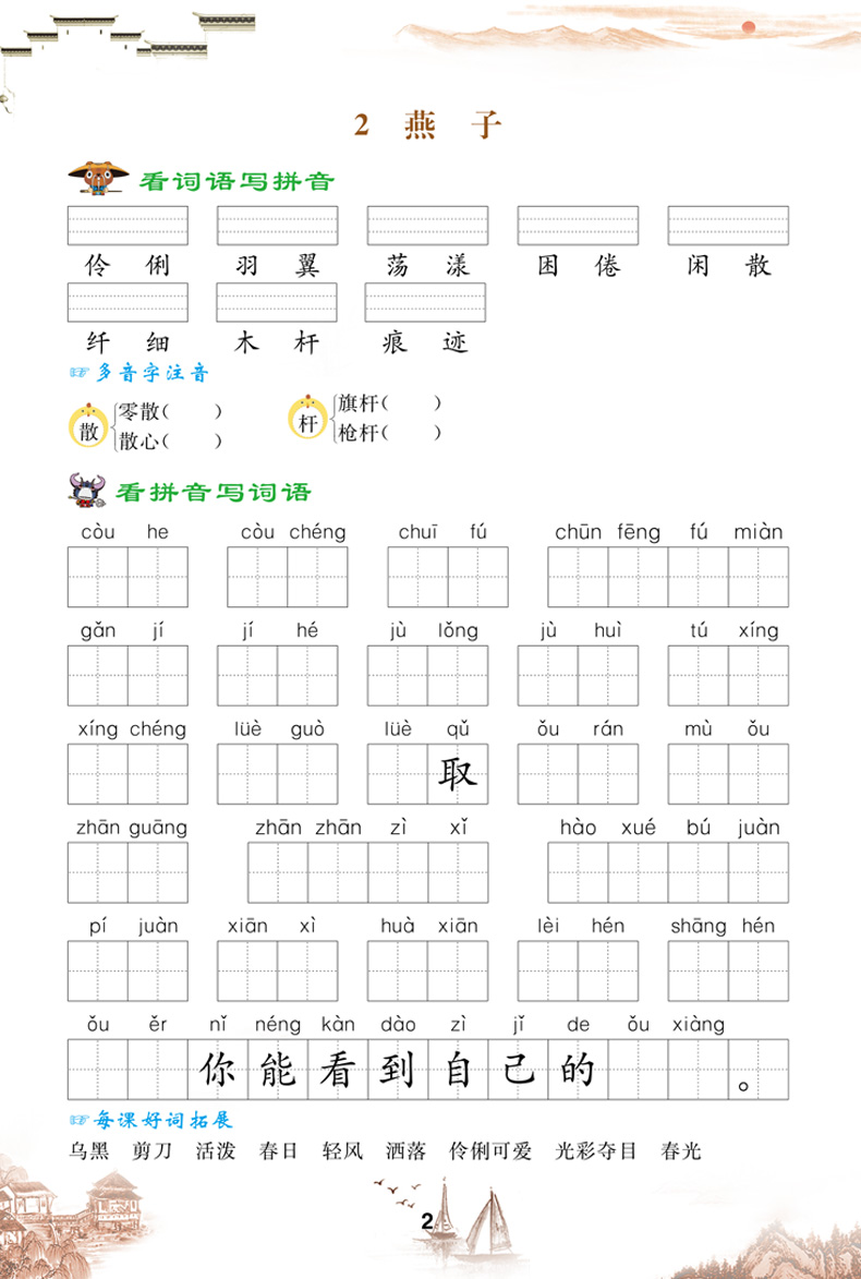 【部编版】看拼音写词语三年级下册 人教版 小学生语文课堂训练作业本三年级拼音专项练习语文默写能手寒假作业天天练同步课本练习