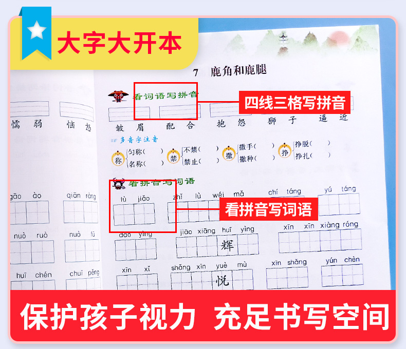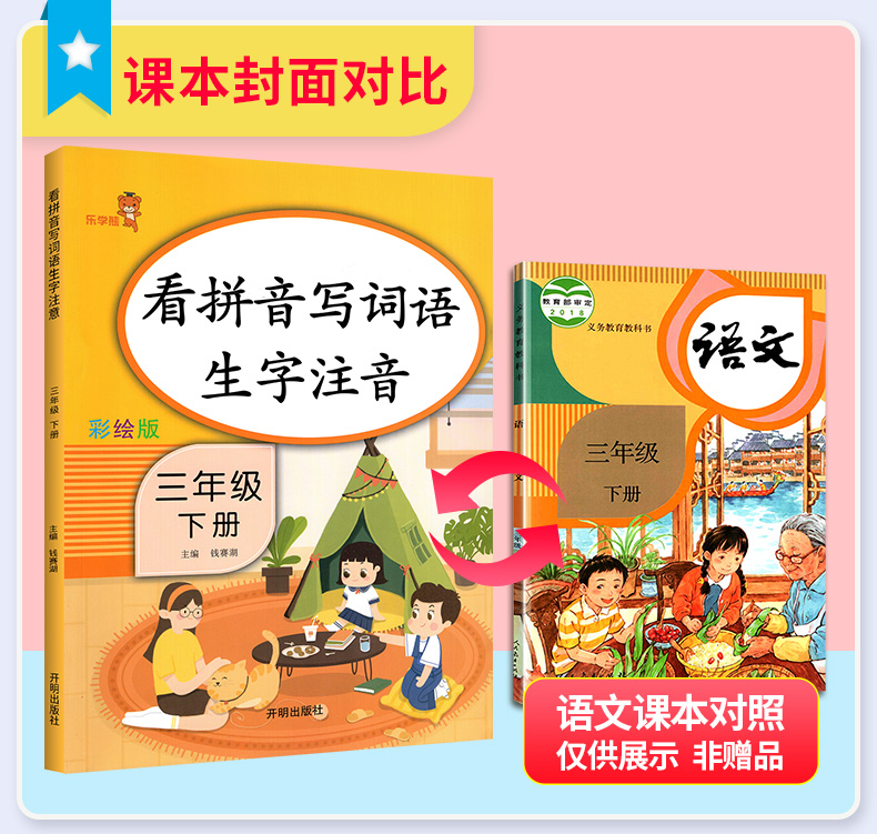 2019人教版,一年级下册看拼音写词语!课本同步,紧扣考纲,课后及时温习,拿高分!彩色印刷,字迹清晰,保护孩子的视力!