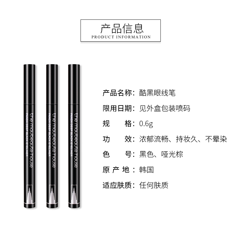 一笔让你更有神,快速吸附在皮肤表面,妆效持久,防水不晕,轻轻一笔,勾画均畅线条,打造魅力电眼,瞬间成为女神!