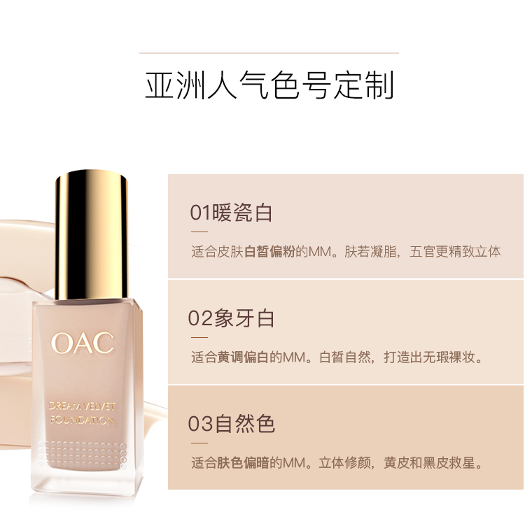 OAC养肤粉底液遮瑕保湿持久控油裸妆干皮油皮亲妈女学生平价bb霜