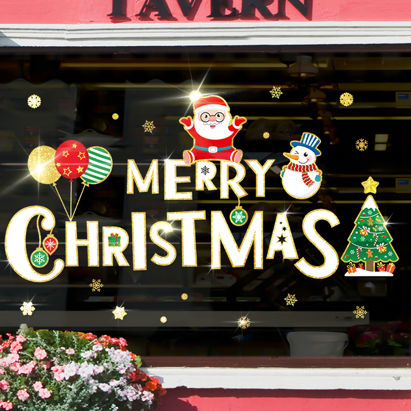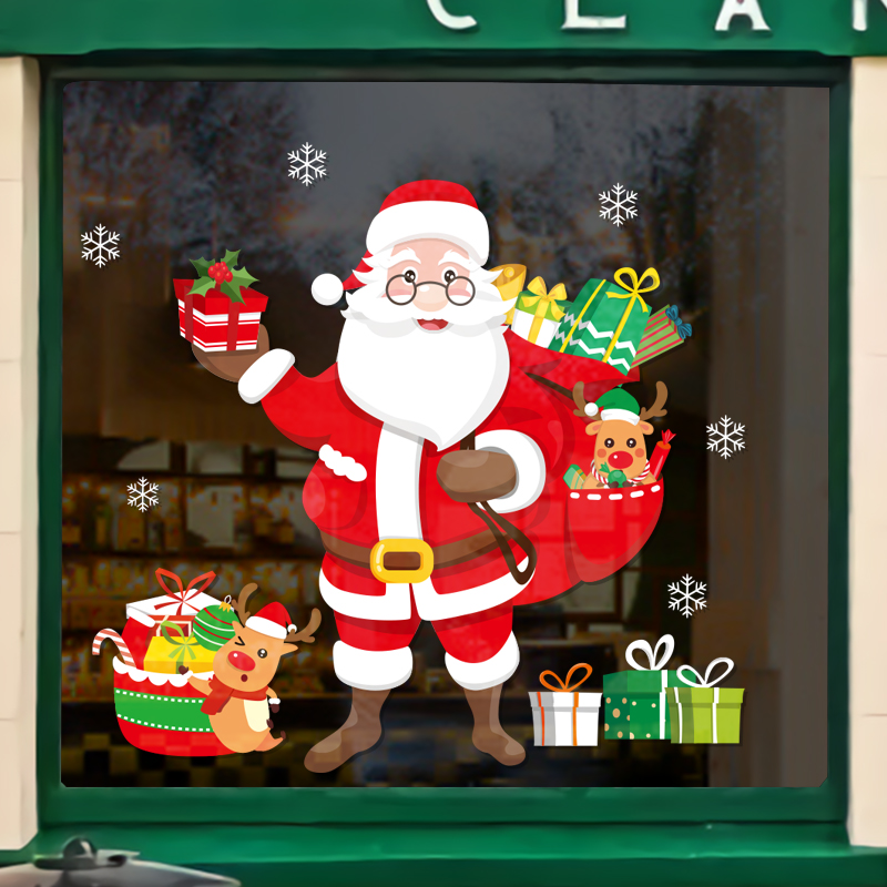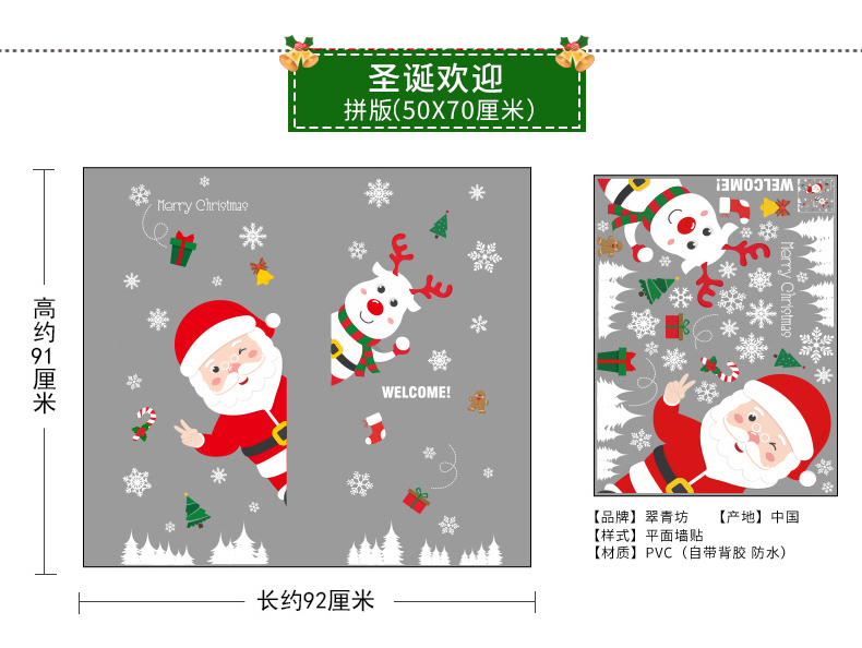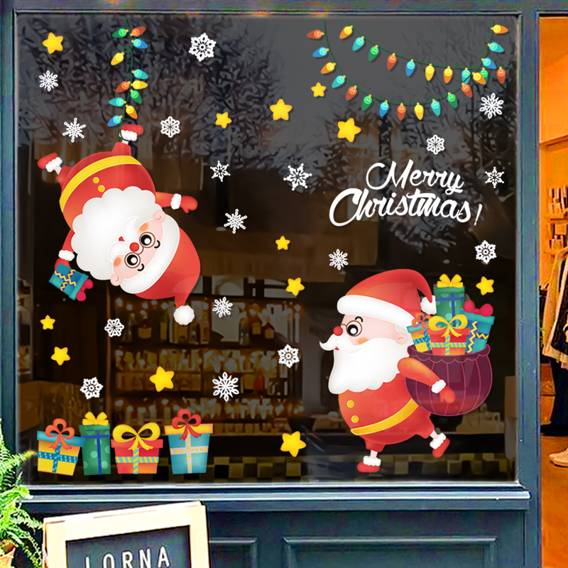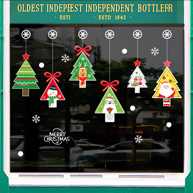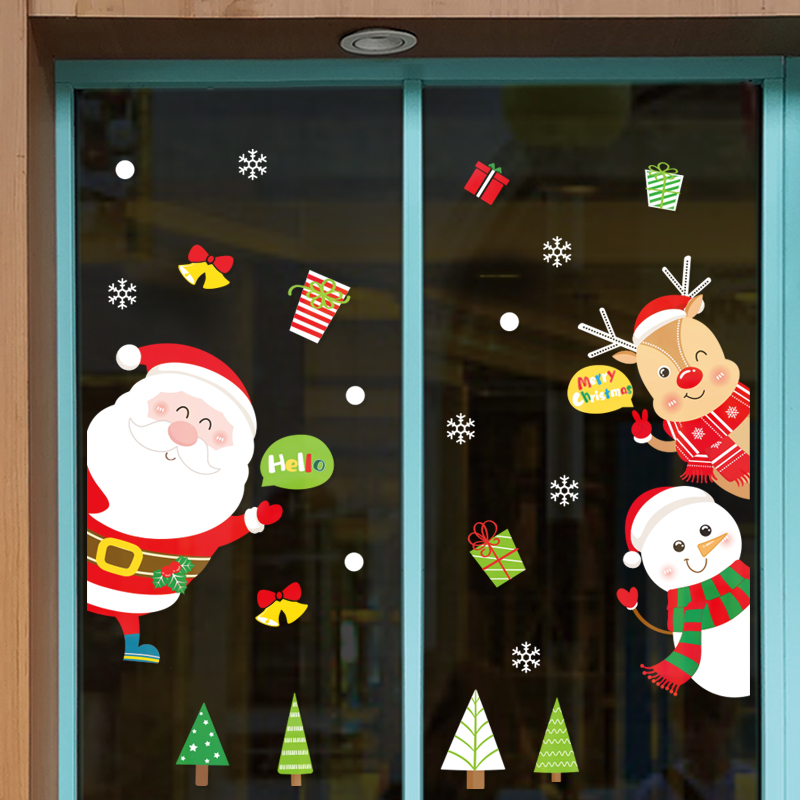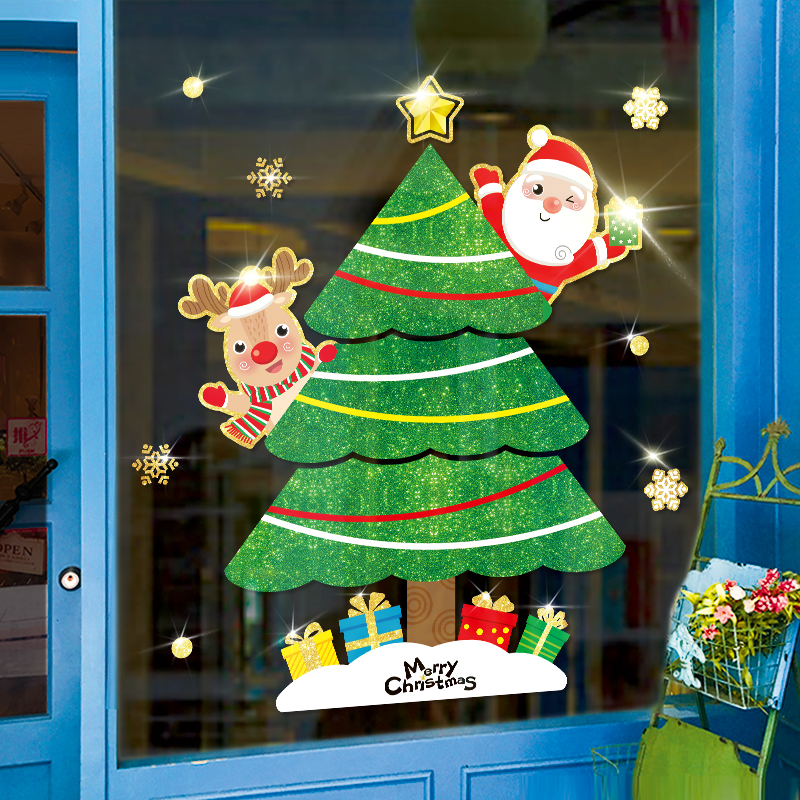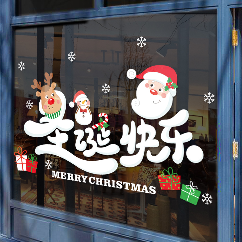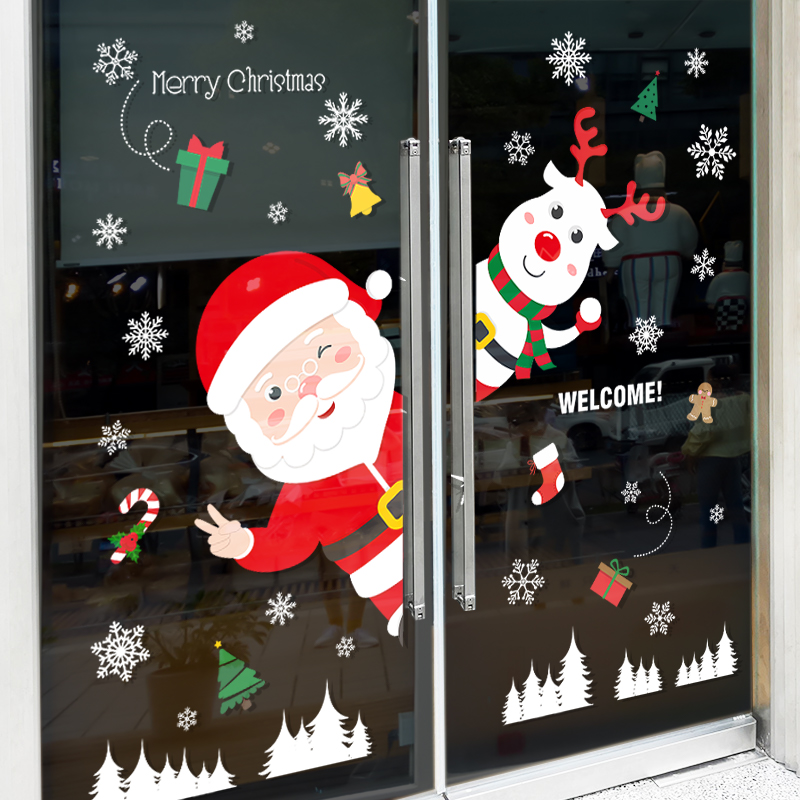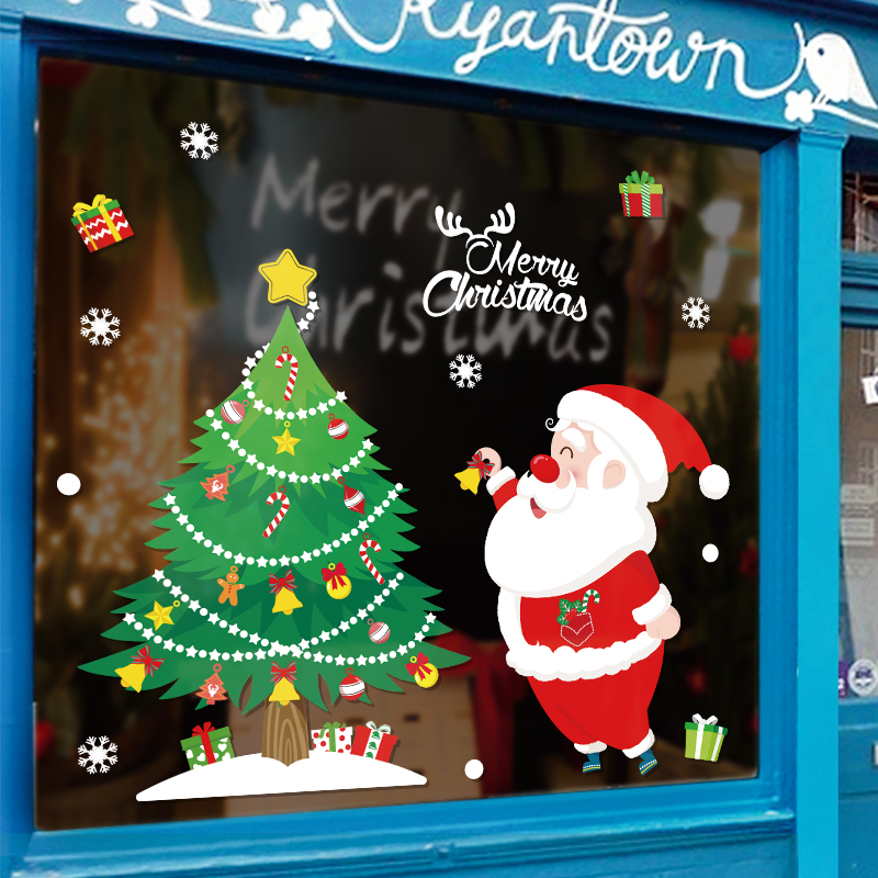 圣诞节饰品玻璃橱窗贴纸雪花装饰店铺场景布置门贴圣诞树老人窗贴