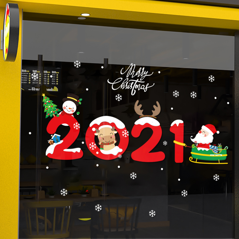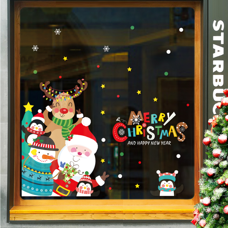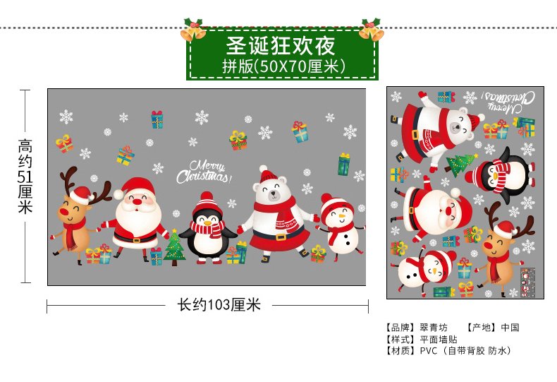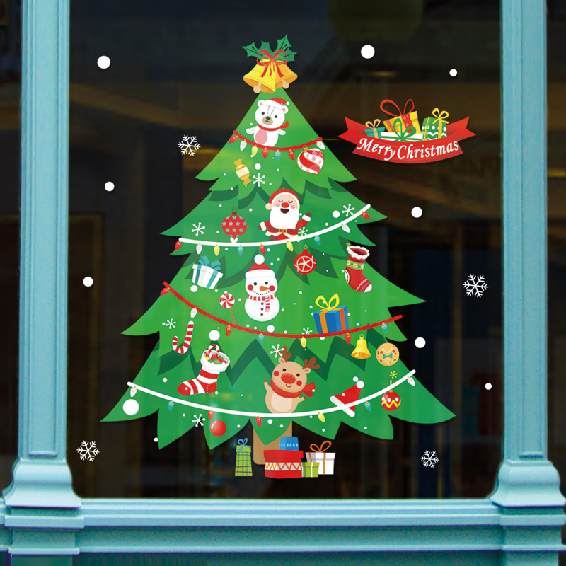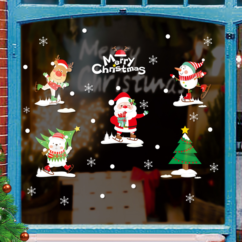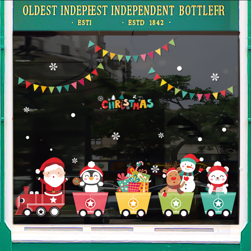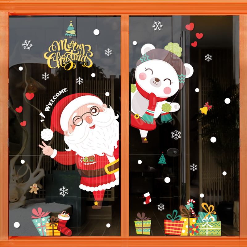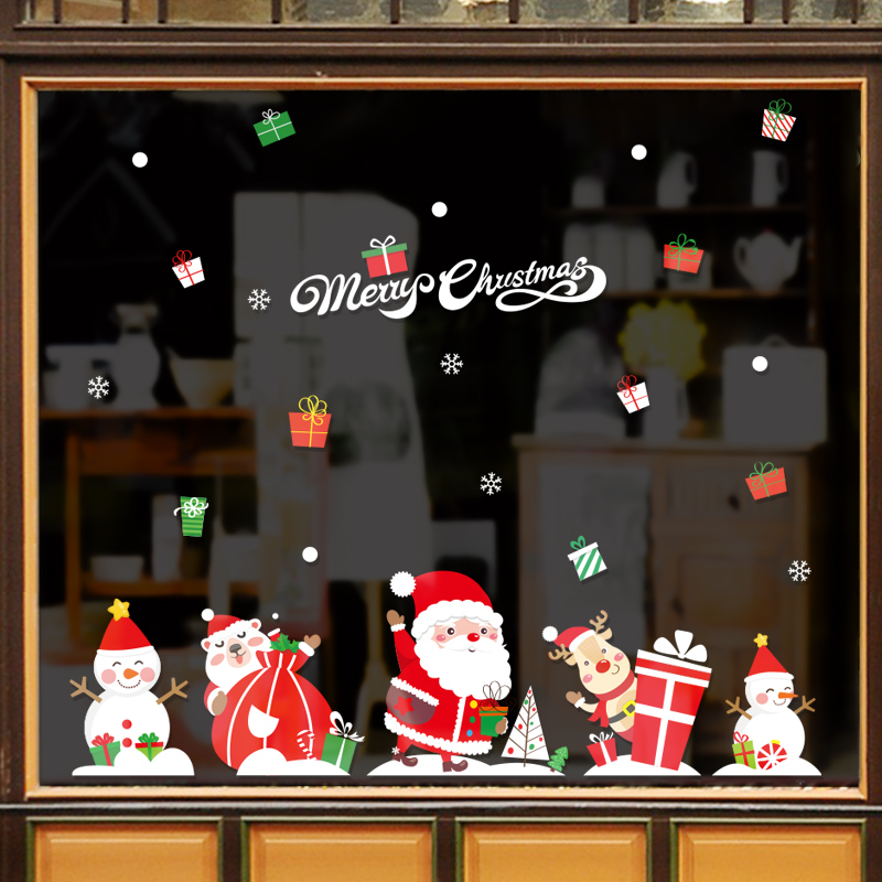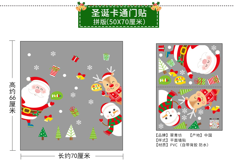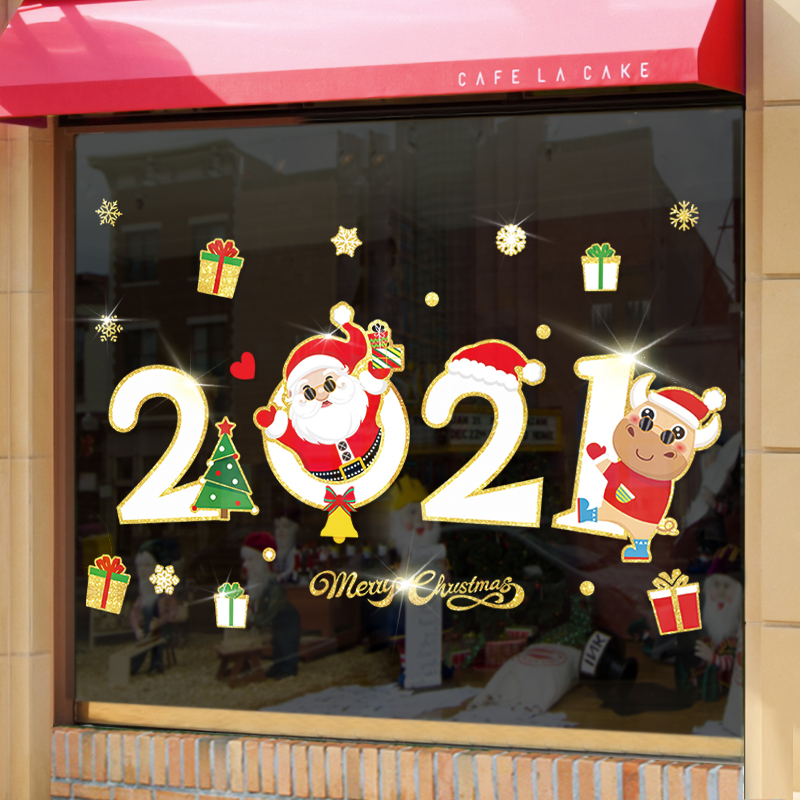圣诞节饰品玻璃橱窗贴纸雪花装饰店铺场景布置门贴圣诞树老人窗贴