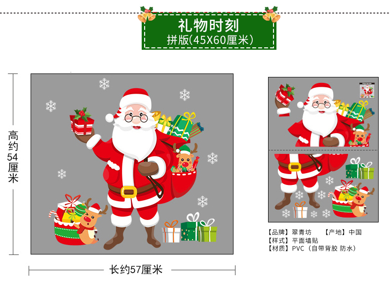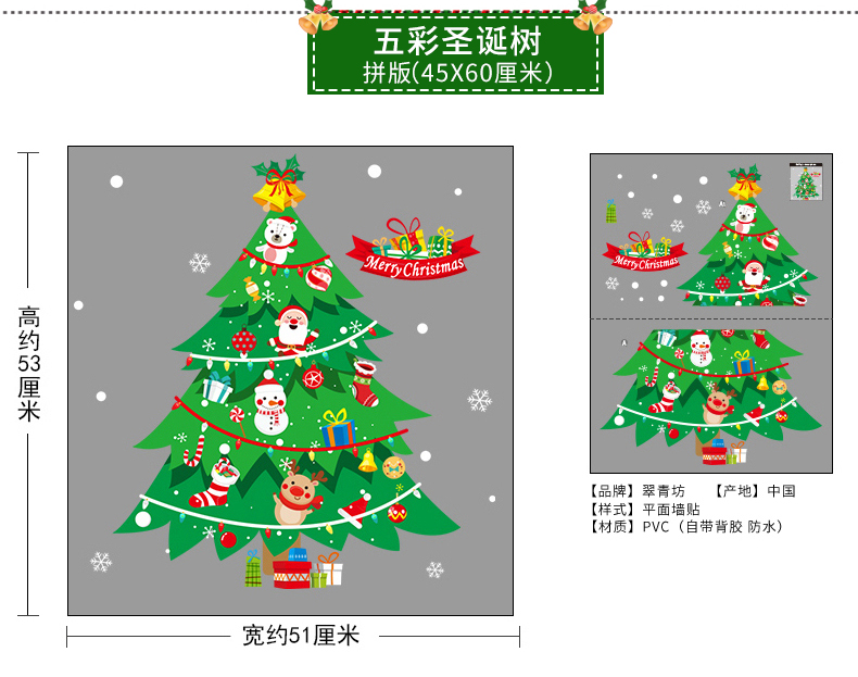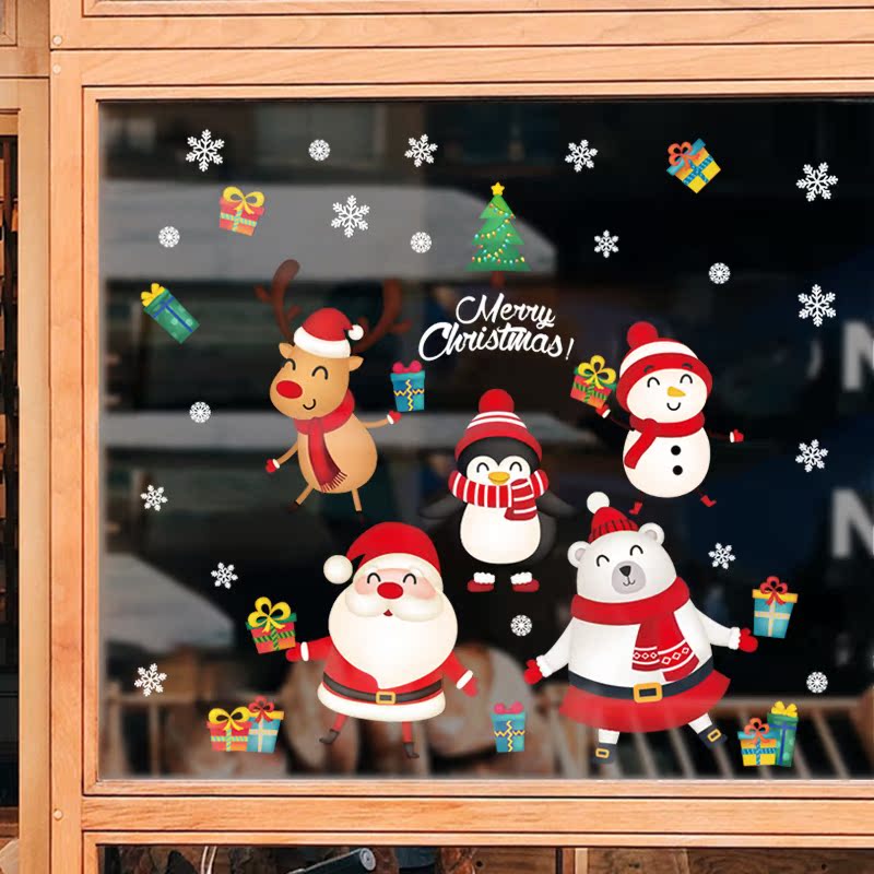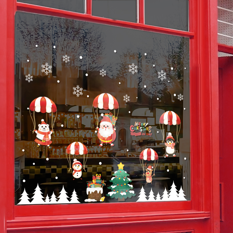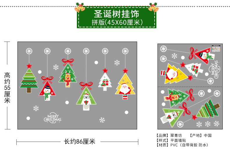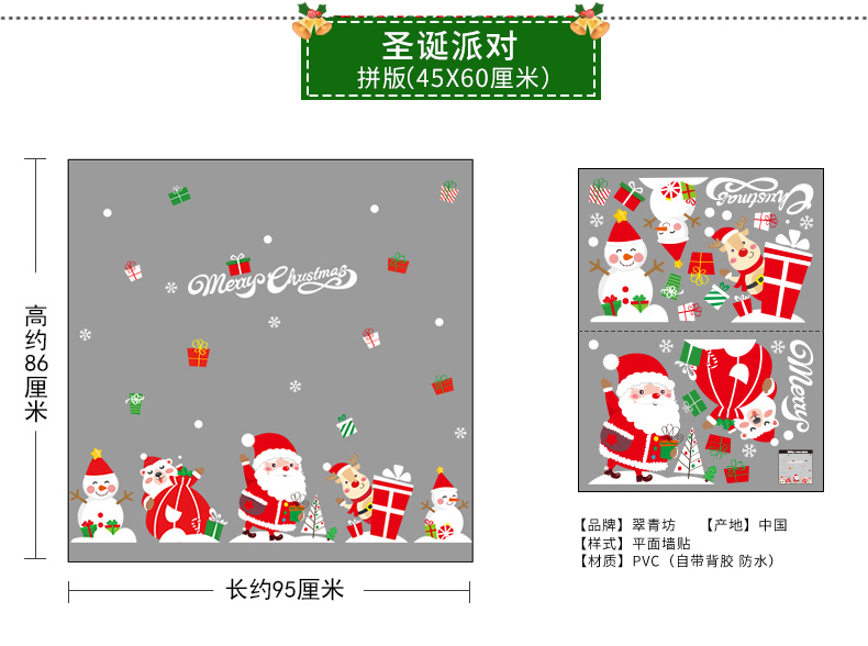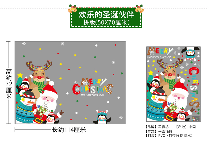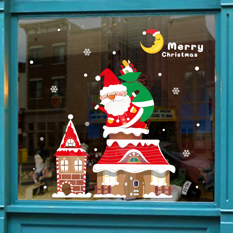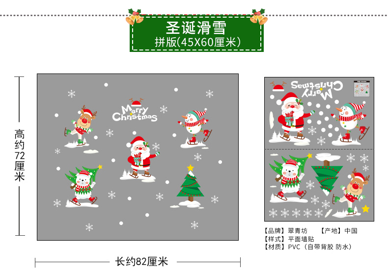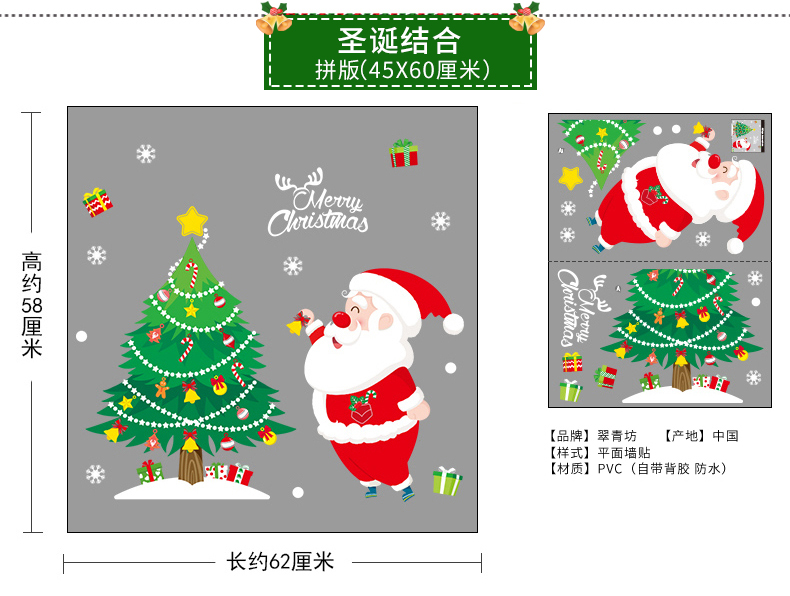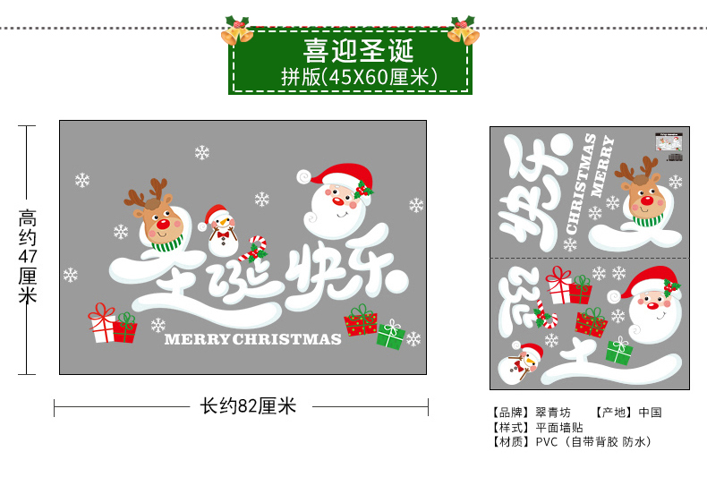 圣诞节饰品玻璃橱窗贴纸雪花装饰店铺场景布置门贴圣诞树老人窗贴