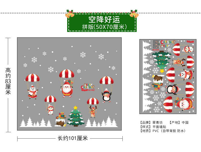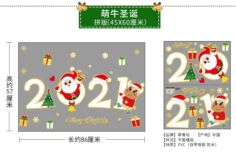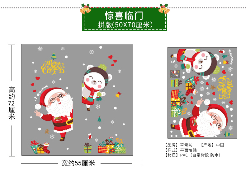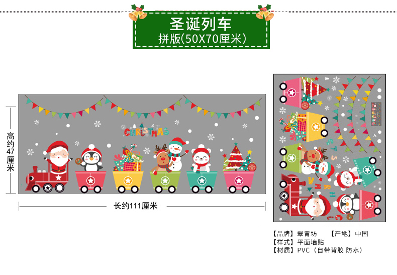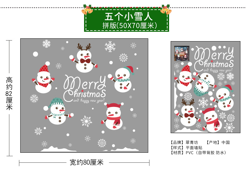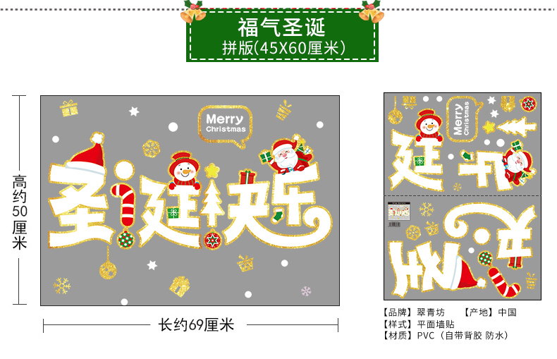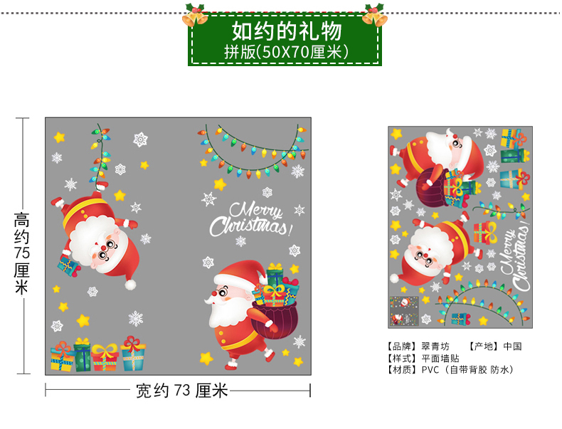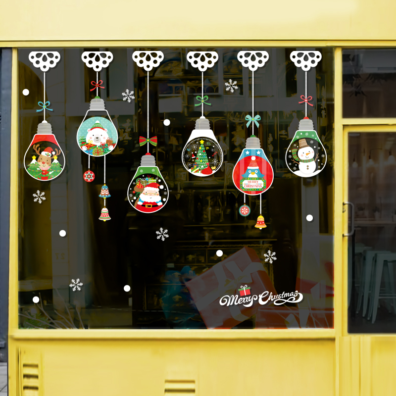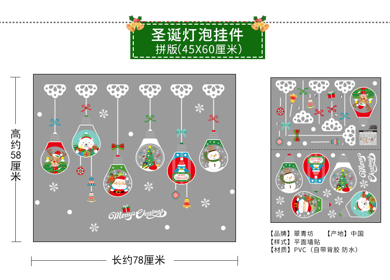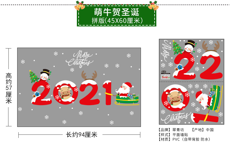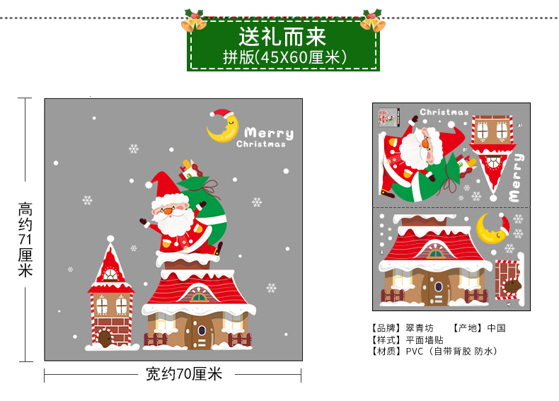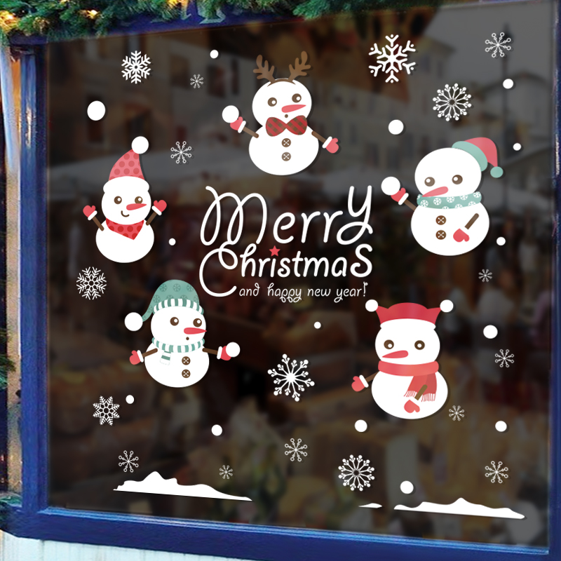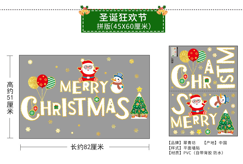 圣诞节饰品玻璃橱窗贴纸雪花装饰店铺场景布置门贴圣诞树老人窗贴