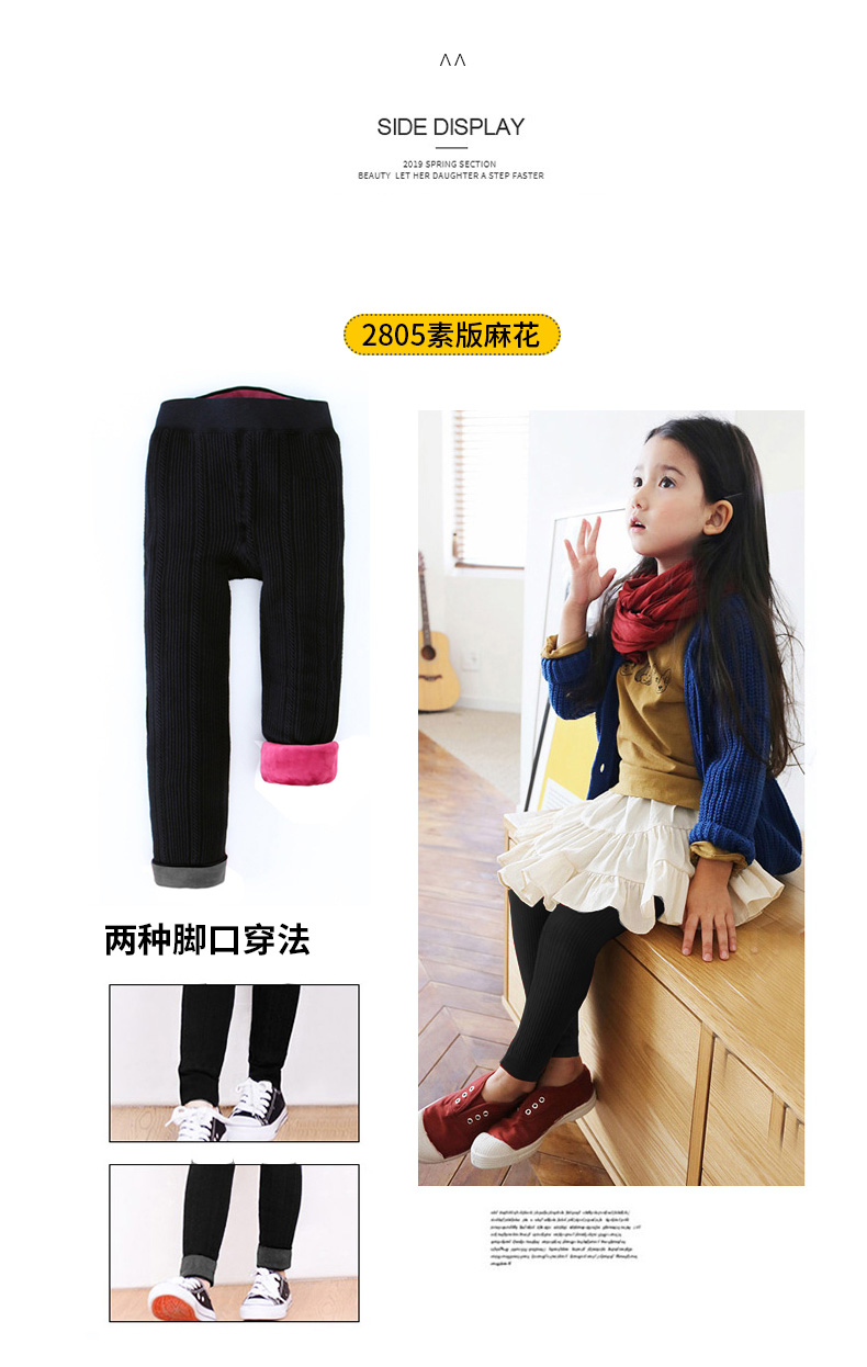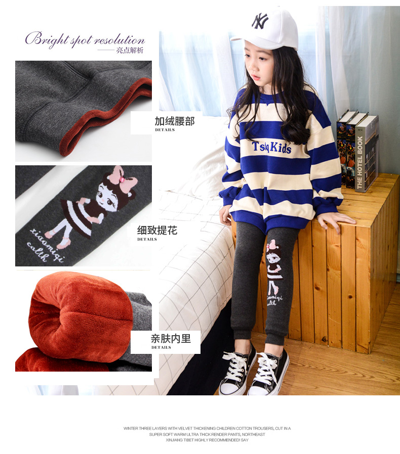 女童冬装小女孩加厚小脚裤子外穿女大童潮冬裤加绒儿童黑色打底裤