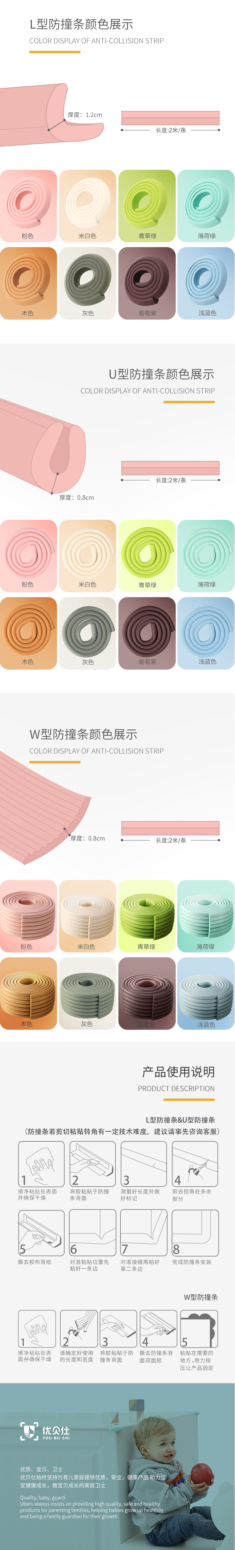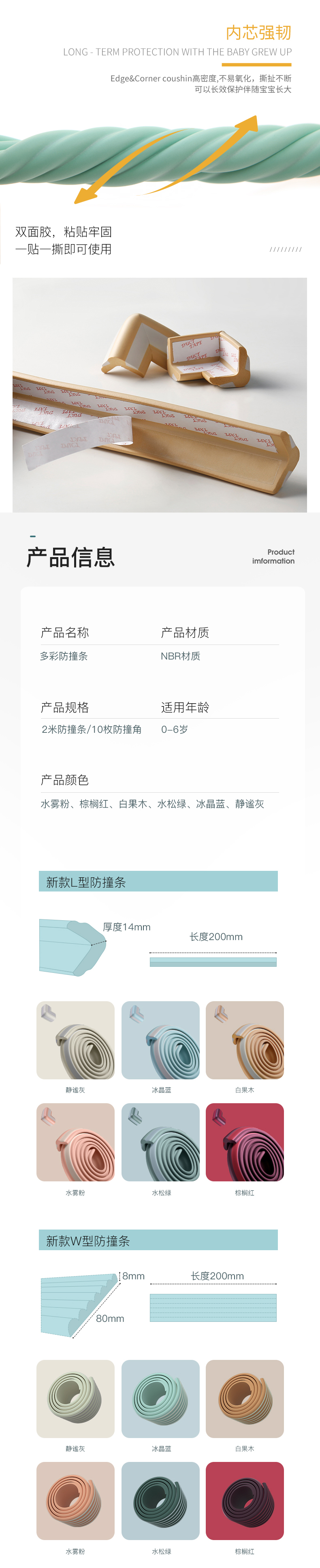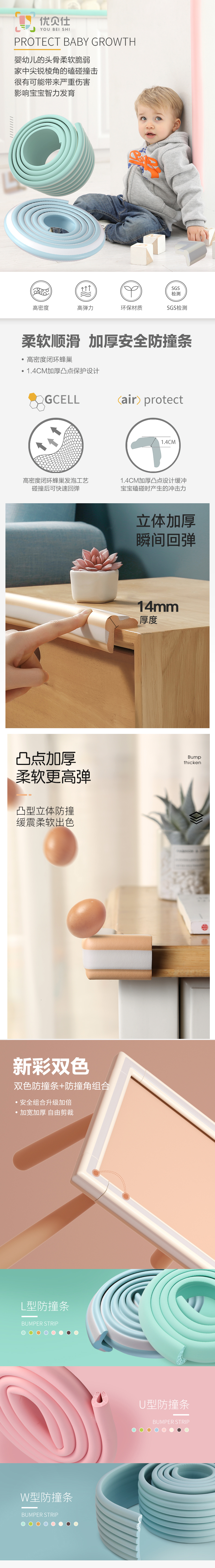 【4.9分好评推荐,2米防撞条送4米3M胶带】环保聚乙烯材料,不含甲醛,安全无异味,高弹柔软,高粘合缓冲防磕防撞,不沾水和污渍,耐磨损,让宝宝远离伤害,全面呵护宝宝快乐成长!多形状多色可选~