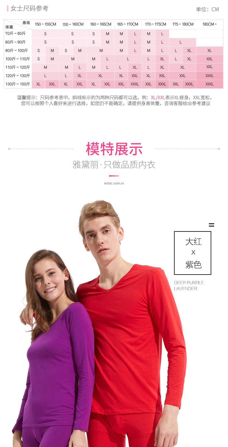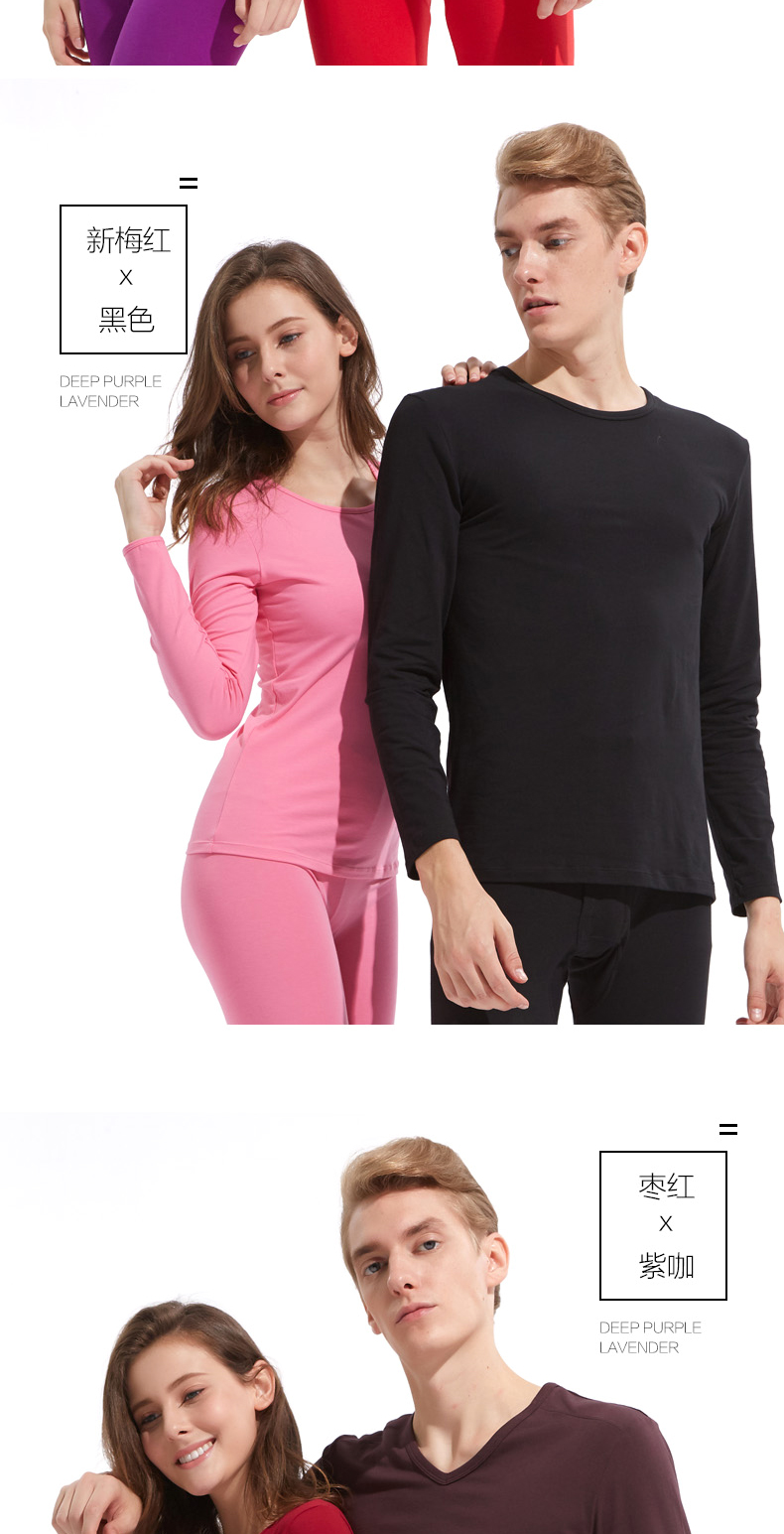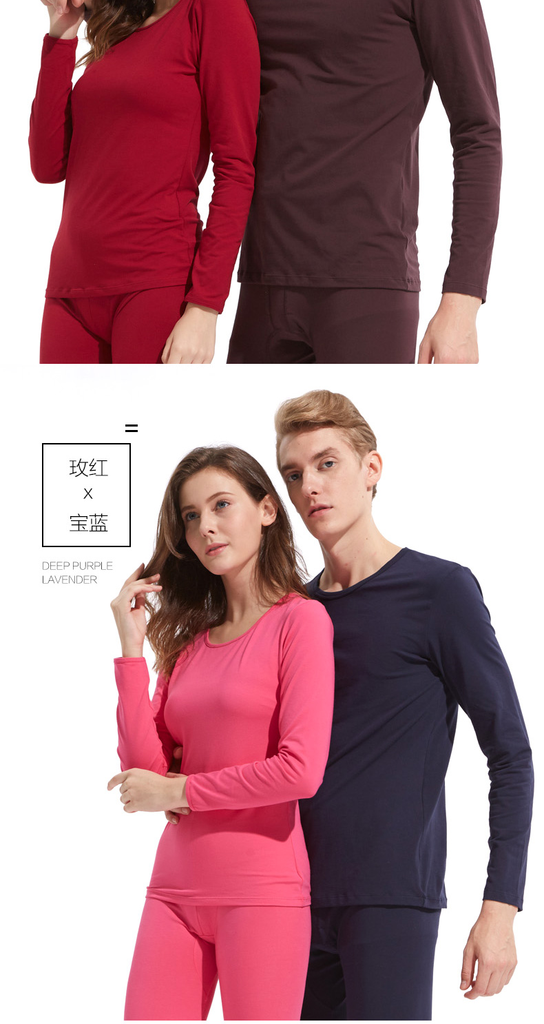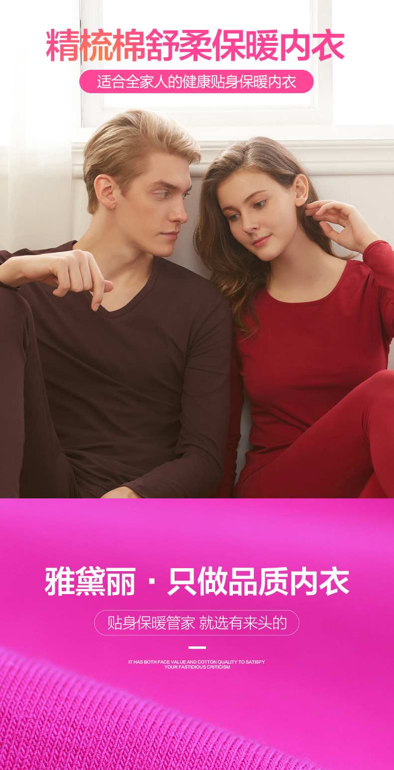雅黛丽 薄款基础情侣款保暖内衣套装男女圆领修身打底秋衣秋裤