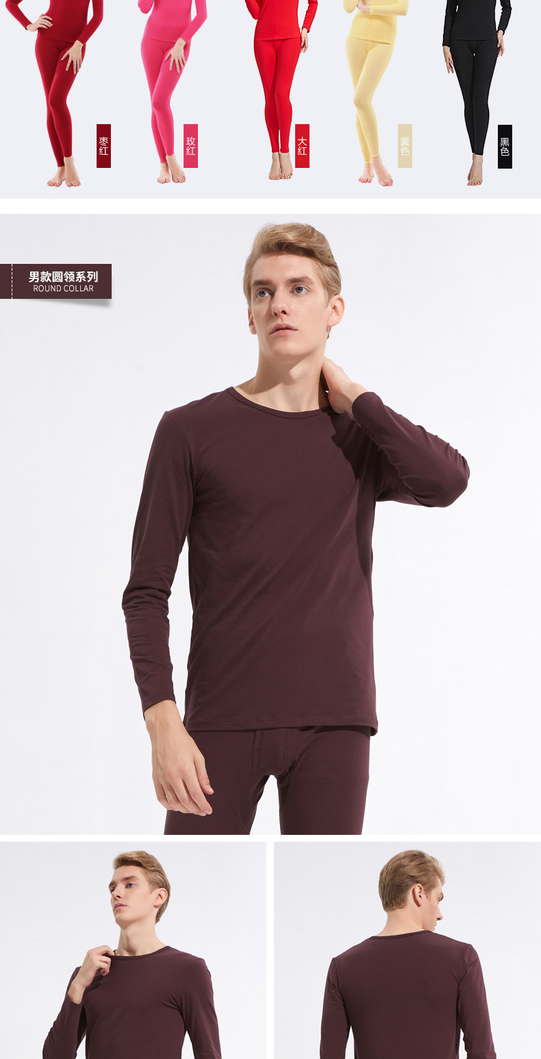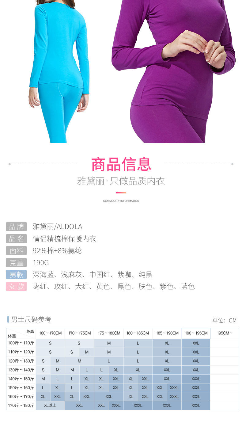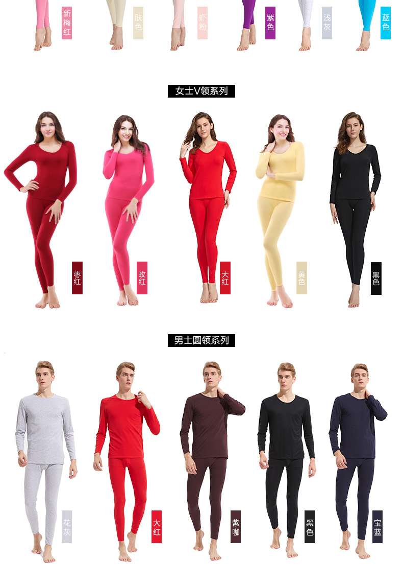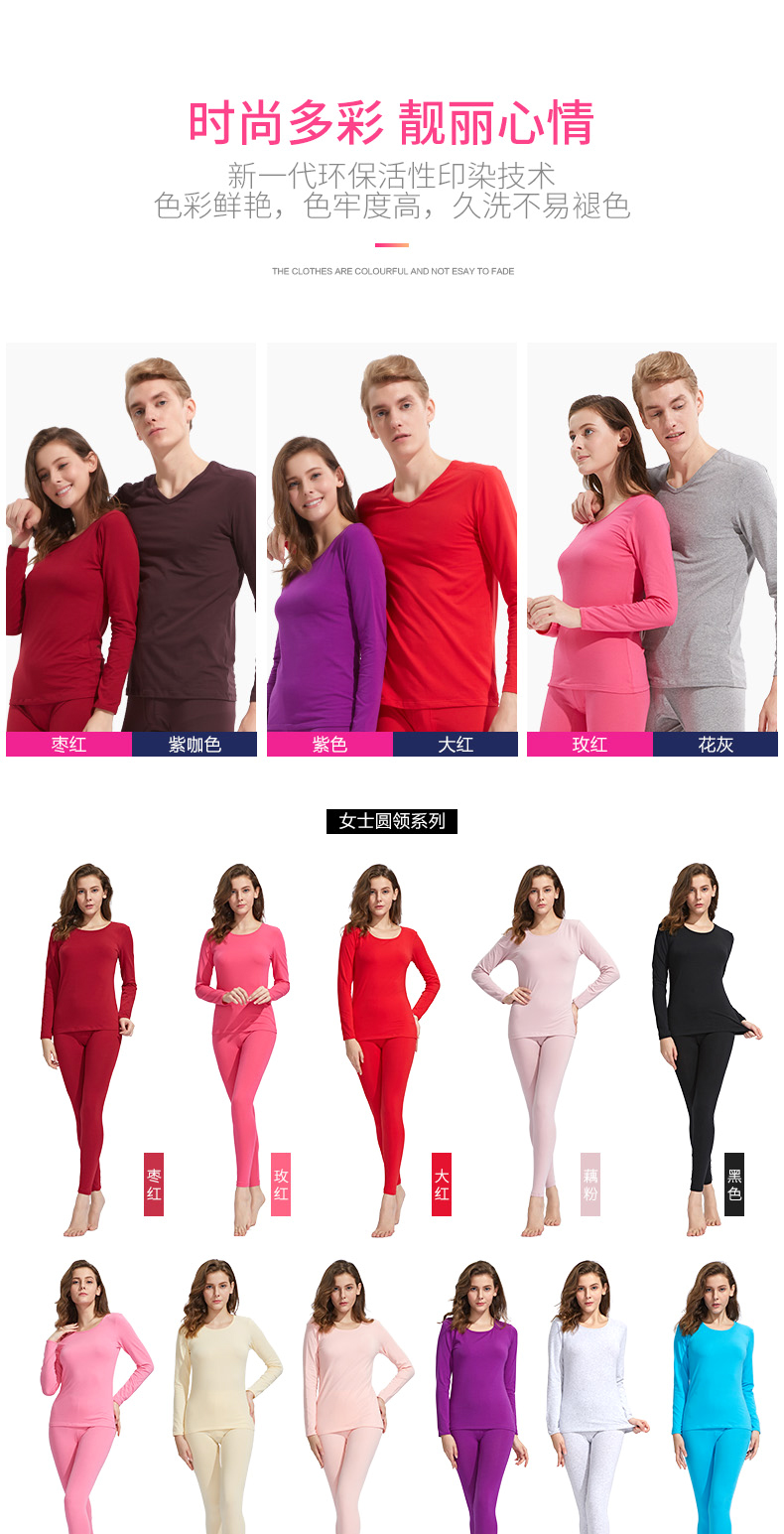 雅黛丽 薄款基础情侣款保暖内衣套装男女圆领修身打底秋衣秋裤
