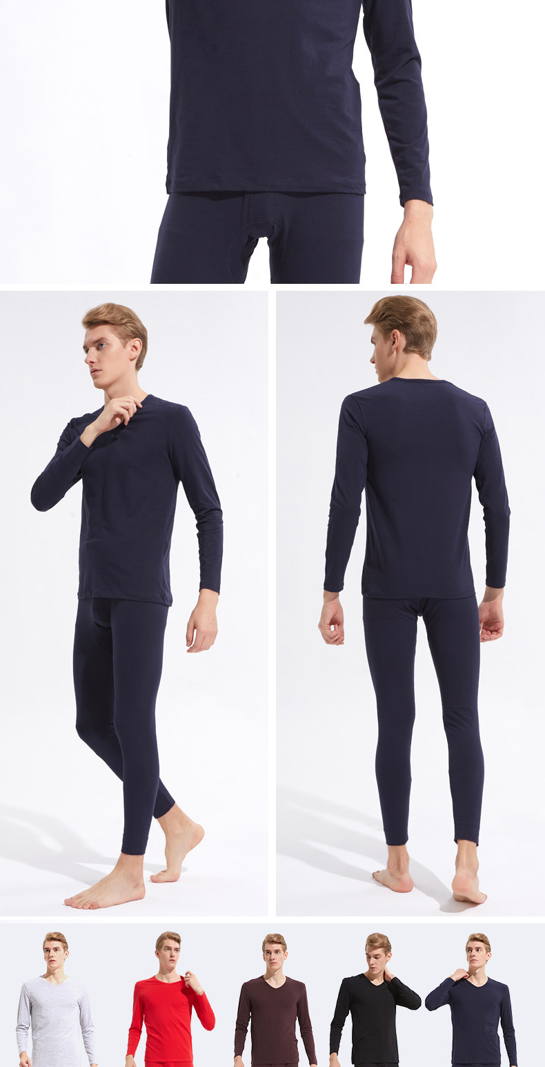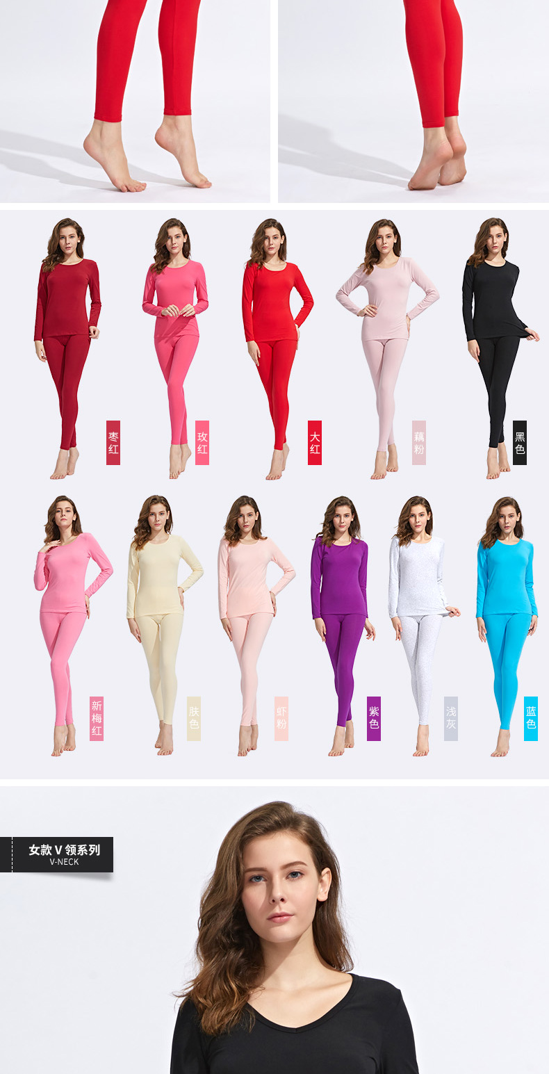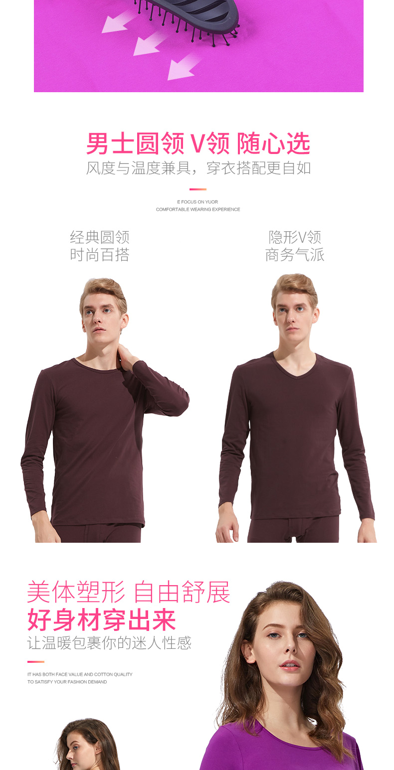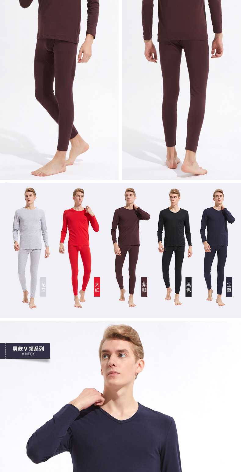 雅黛丽 薄款基础情侣款保暖内衣套装男女圆领修身打底秋衣秋裤