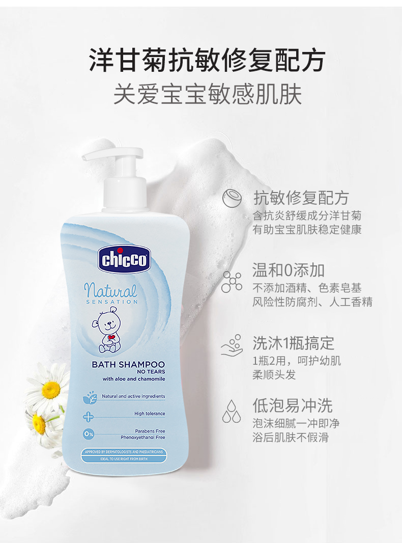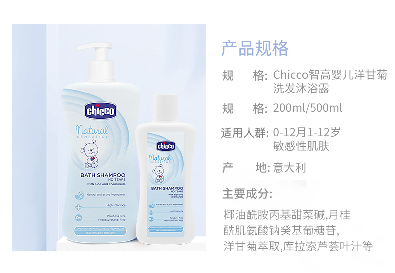 意大利chicco智高 婴儿沐浴露洗发水二合一 宝宝儿童洗护专用正品