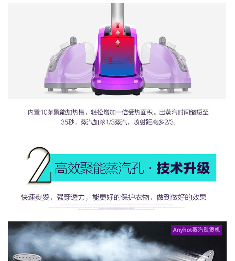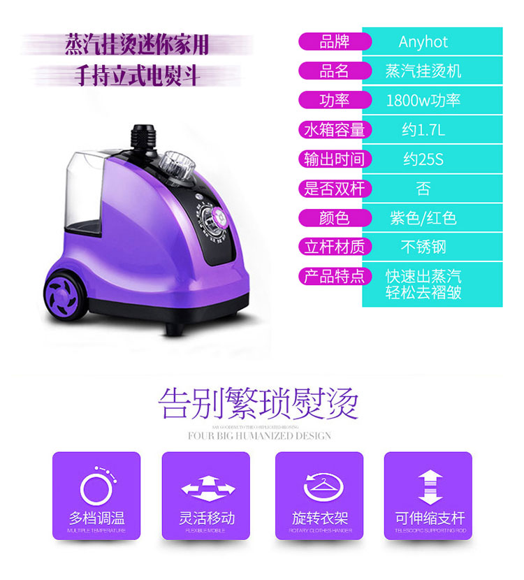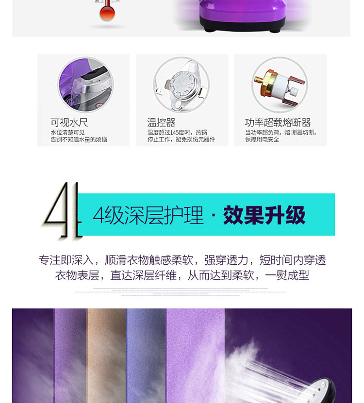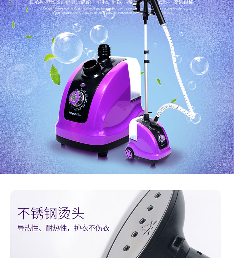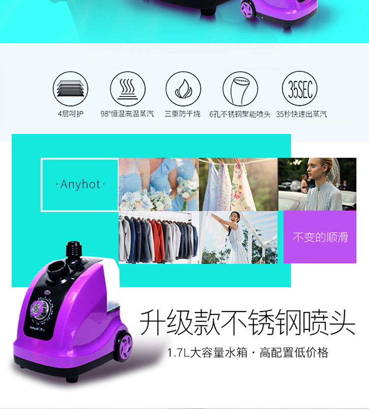 1800瓦超大功率,1.7L大容量水箱,6孔不锈钢聚能喷头,三重防干烧,4级深层护理,35秒快速出蒸汽,高颜值,大功率,熨衣更省心【赠运费险】