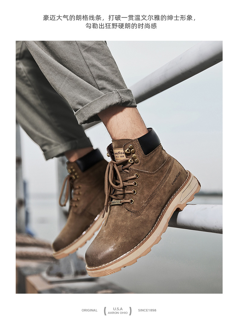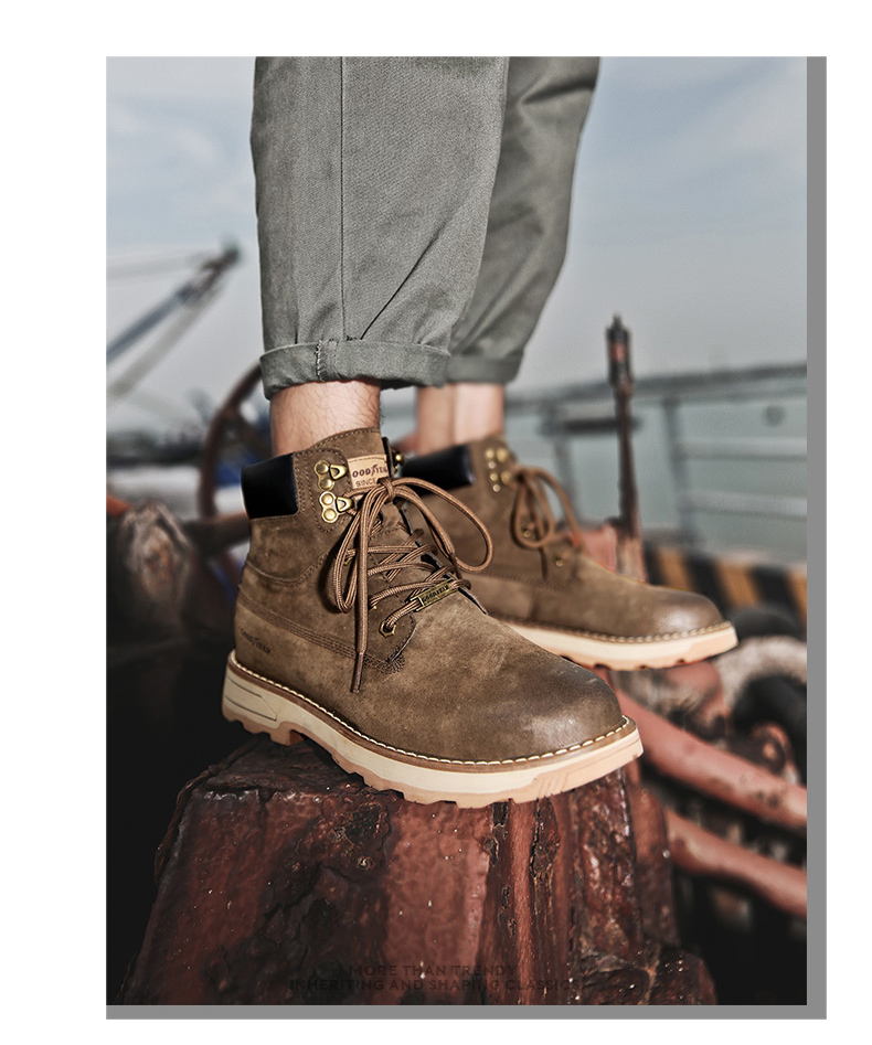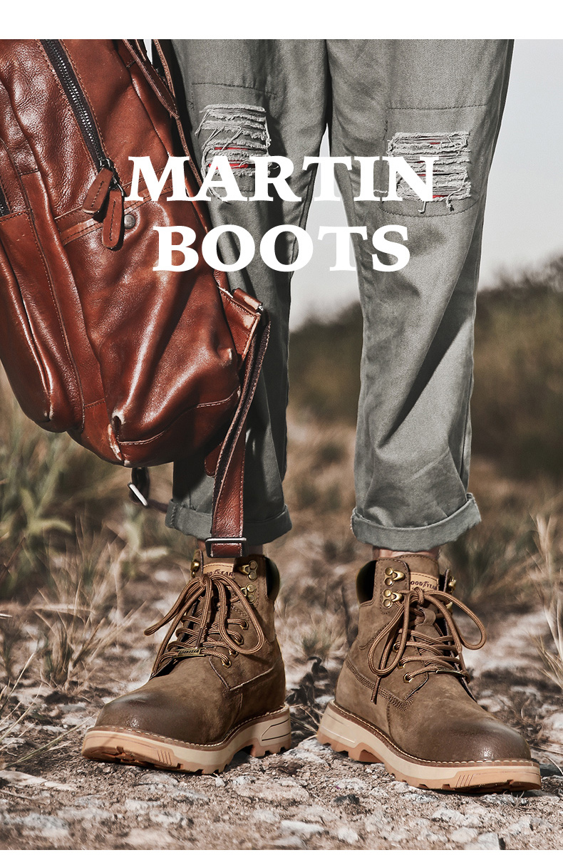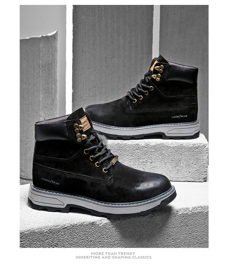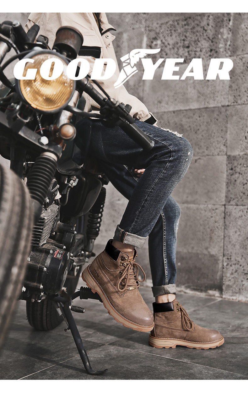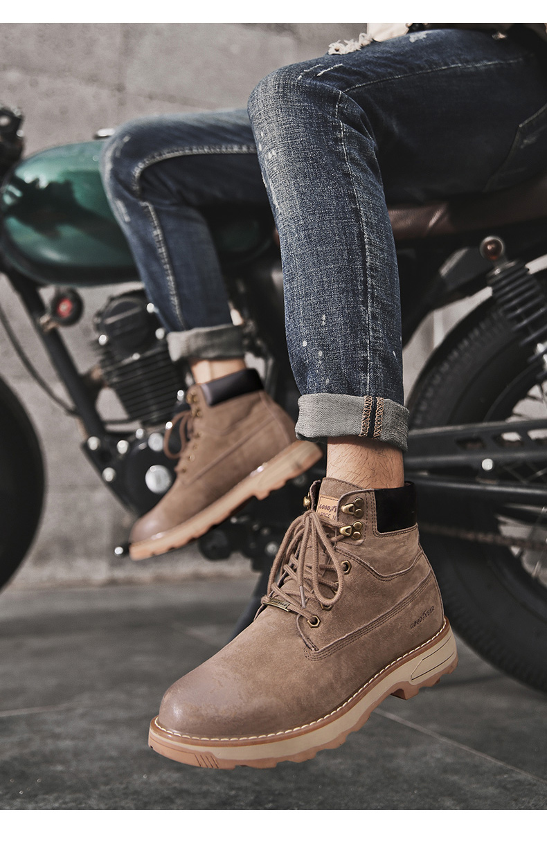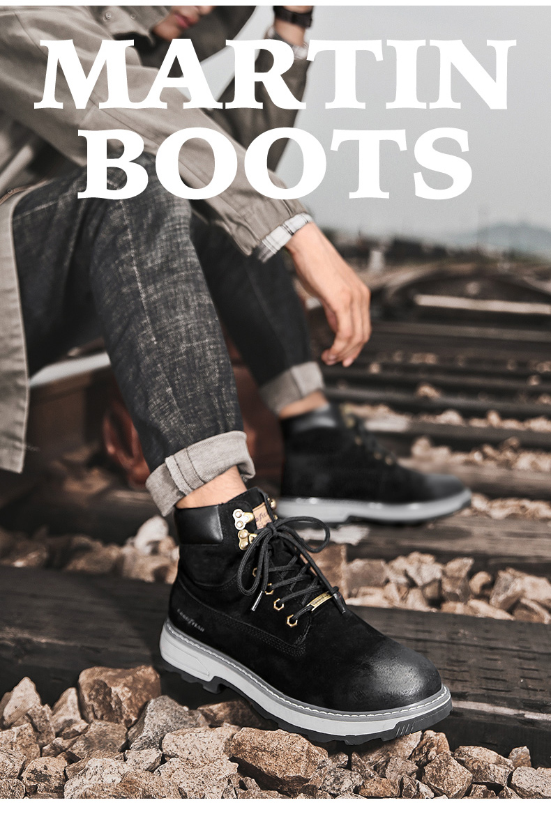 固特异男鞋秋冬季真皮马丁靴男高帮工装鞋懒人英伦风潮流百搭靴子