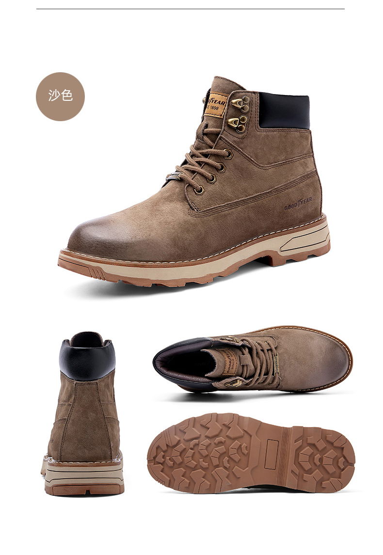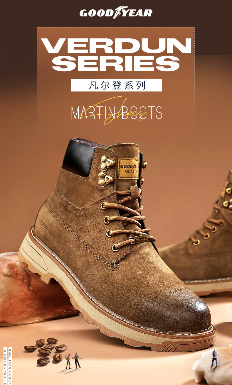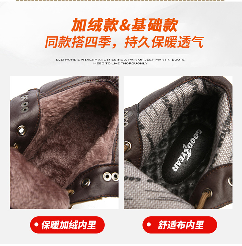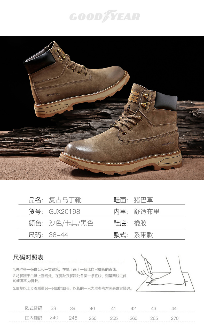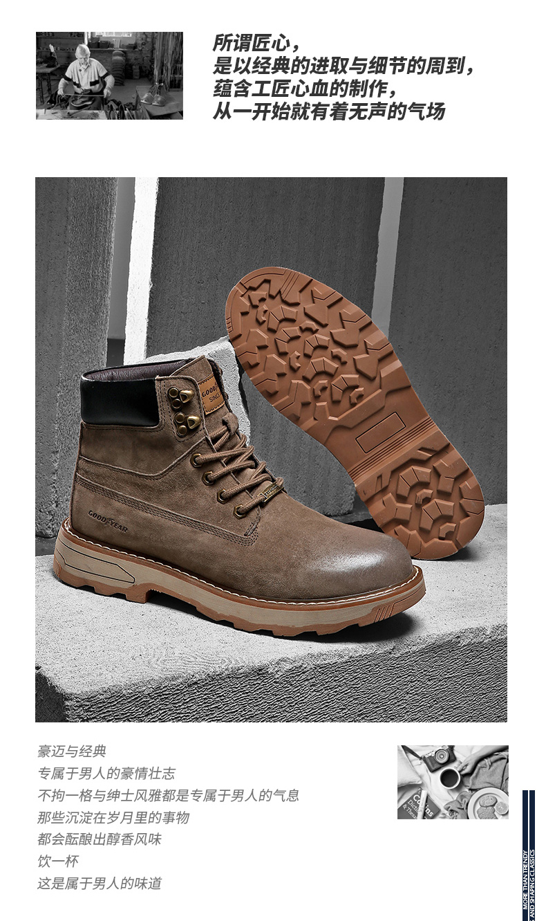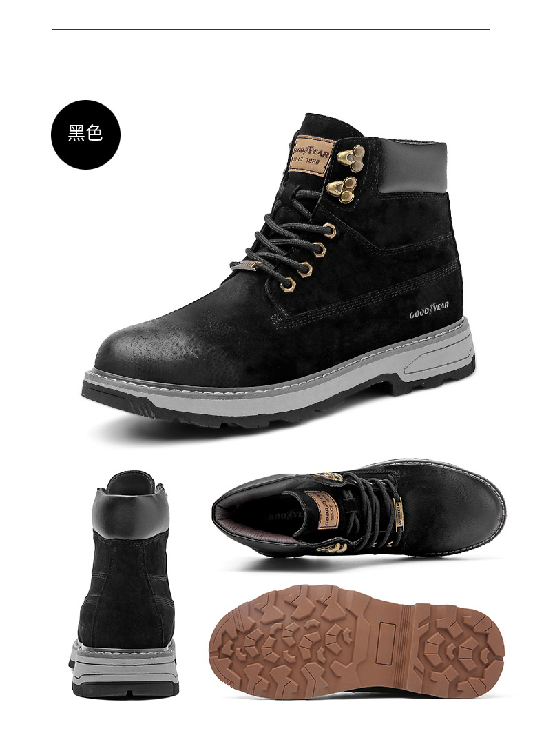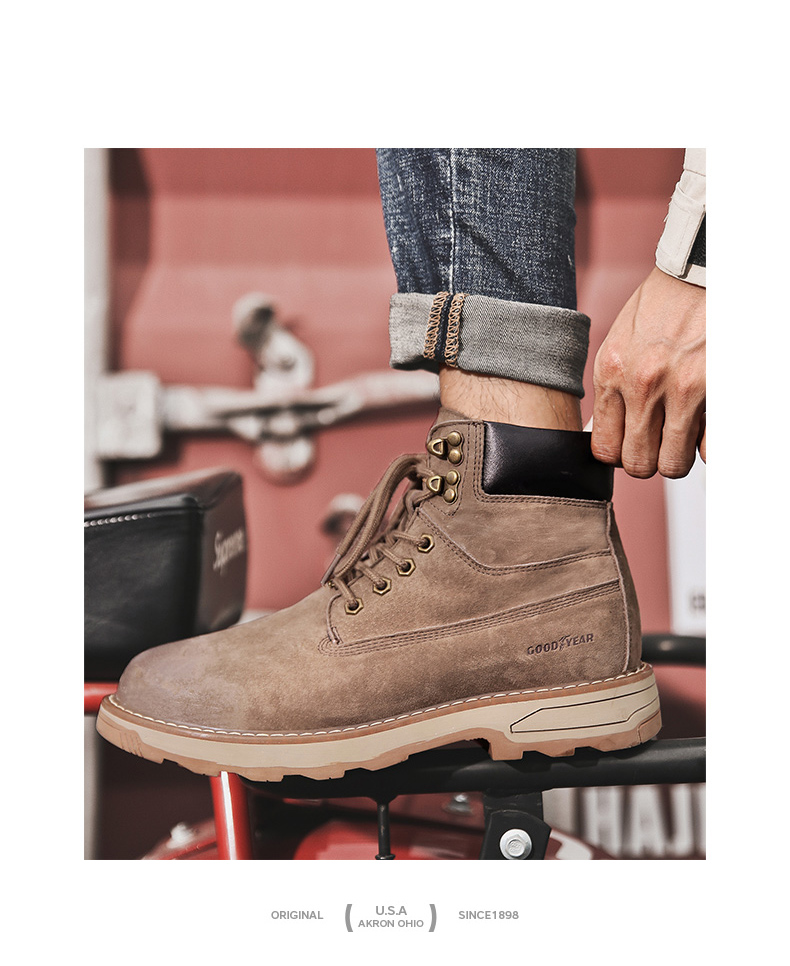 固特异男鞋秋冬季真皮马丁靴男高帮工装鞋懒人英伦风潮流百搭靴子