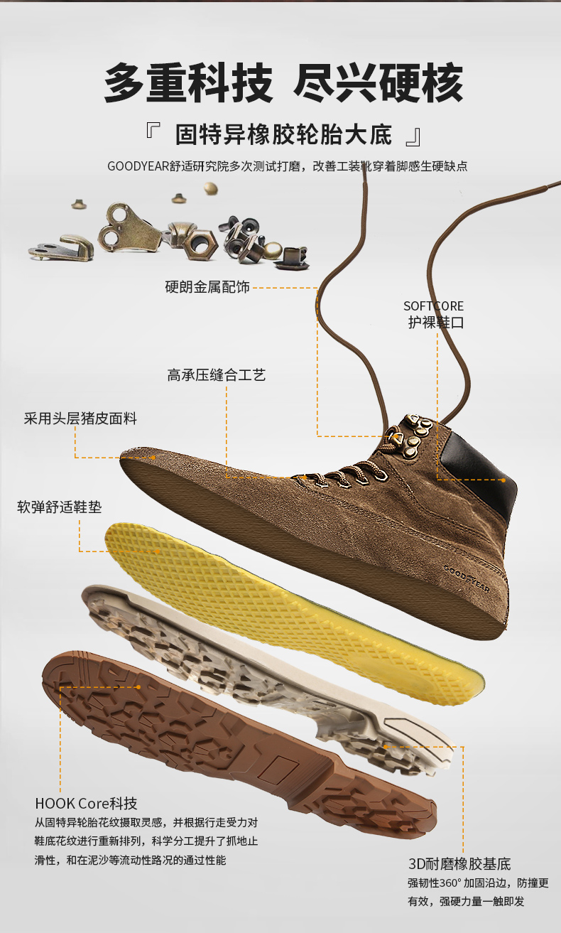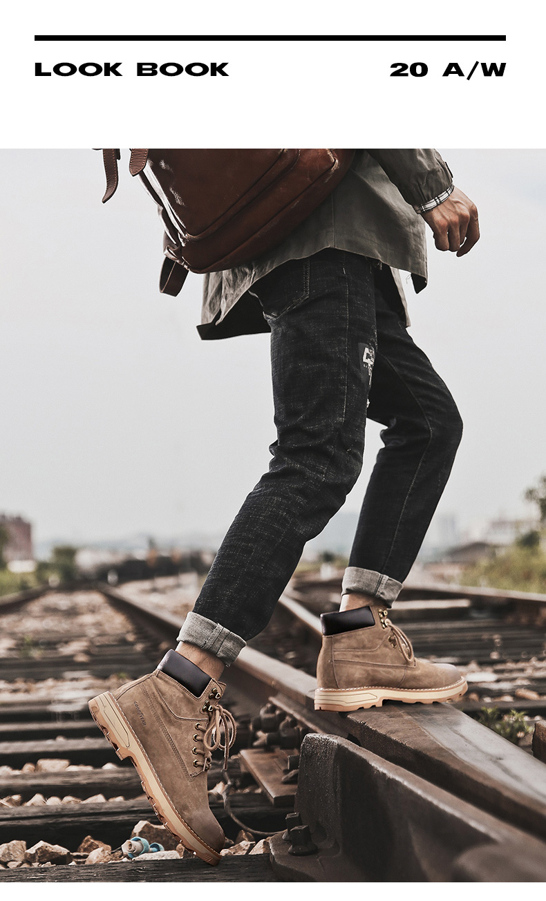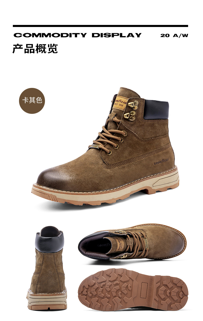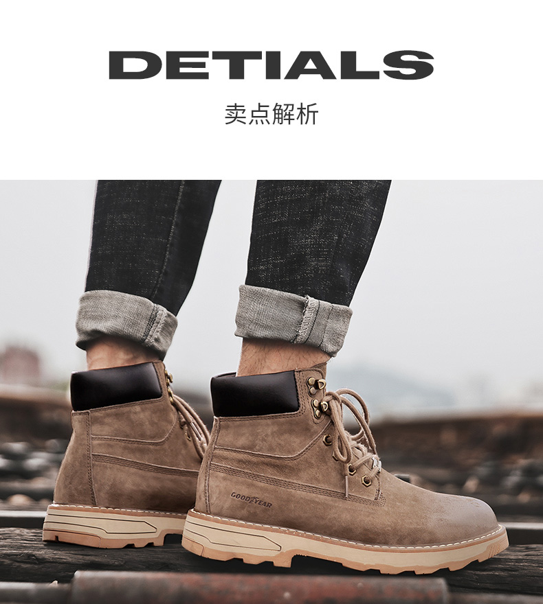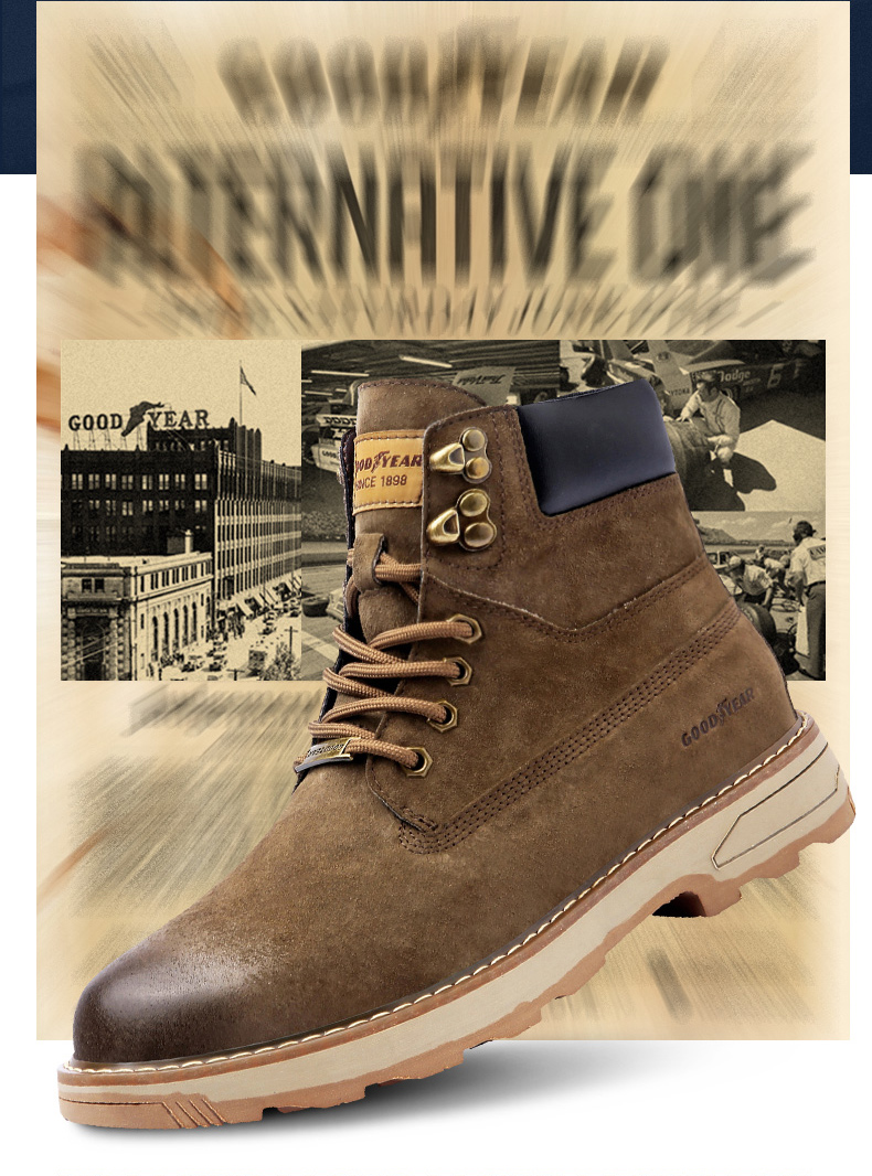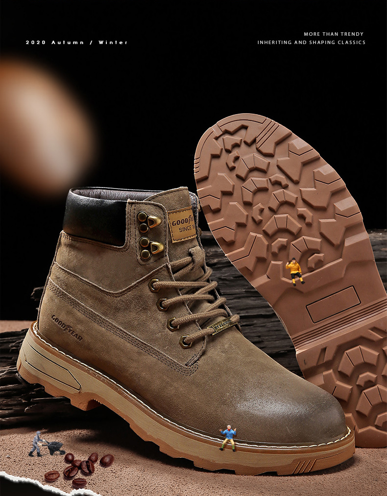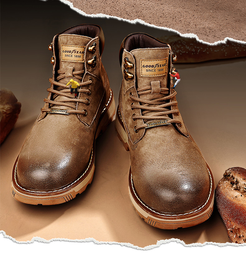 固特异男鞋秋冬季真皮马丁靴男高帮工装鞋懒人英伦风潮流百搭靴子