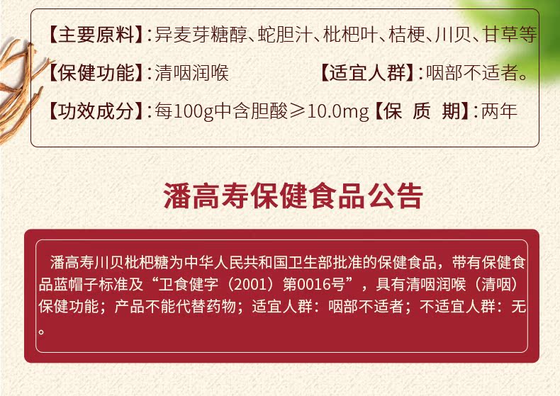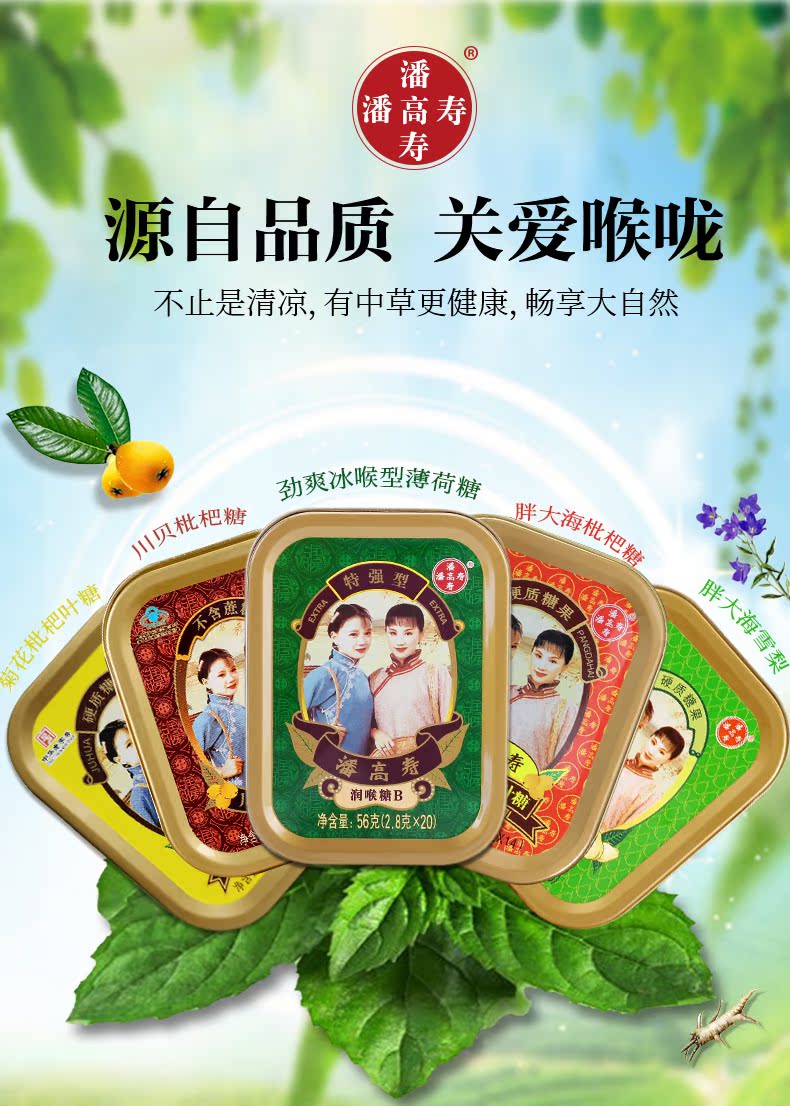 【四盒】潘高寿薄荷糖川贝枇杷教师胖大海润喉糖口气清新盒装糖果